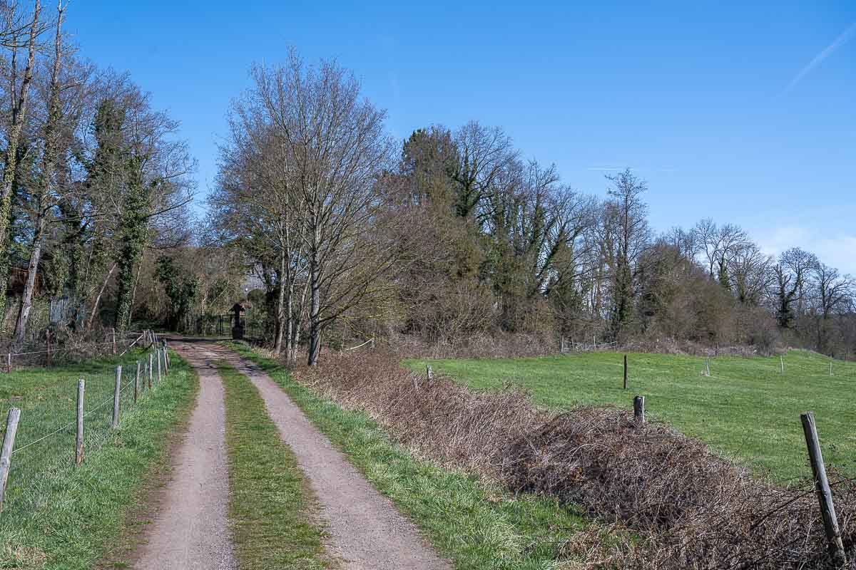 Die Anfahrt von Leichlingen verlief ohne Probleme, nach einer knappen Stunde war ich in Satzvey. Ich durchquerte den Ort und fand am Ortsausgang, direkt hinter dem Bahnübergang, einen Parkplatz. Von dort sind es nur ein par hundert Meter bis zur Burg. Deren Innenhof durfte ich auf Nachfrage betreten. Eine sehr schöne Anlage ist das, in der in coronafreien Zeiten viele Veranstaltungen stattfinden. Man war dort fleißig am Renovieren und Instandhalten. Mit einem der dort arbeitenden Handwerker unterhielt ich mich kurz. Er klagte über die fehlenden Einnahmen. Seit letzten Jahr im Mai hatte des dort keine Veranstaltung mehr gegeben. Wie heißt es auf der Website der Burg : Unsere Burg hat die Pest überstanden, aber ob sie die Corona-Krise übersteht ist derzeit fraglich.