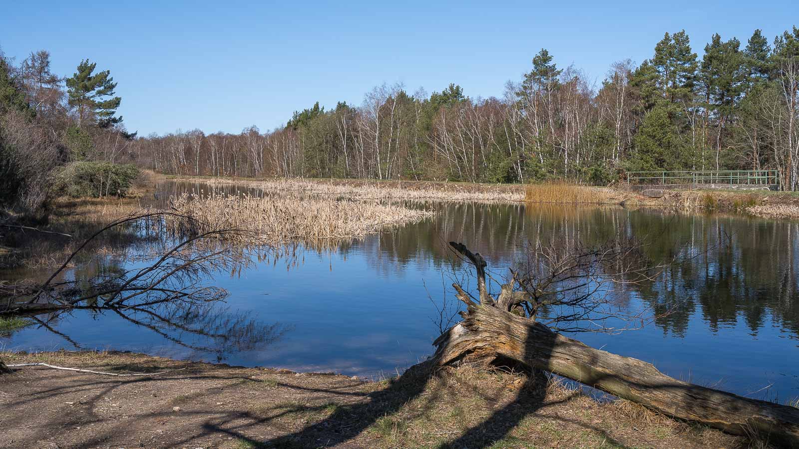 Kurz vor Erreichen eines Vorortes von Kommern verließ meine Route den schönen Veybach und bog recht ab in Richtung Schavener Heide. Dieses Naturschutzgebiet wurde bis in die 70-er Jahre von Belgischen Truppen als Panzerübungsgelände benutzt. Durch diese Verwendung wurde das Gelände verkürzt gesagt : kaputt gemacht. Nach Übernahme durch die Bundeswehr wurde es renaturiert und z.T. aufgeforstet. Auch heute noch wird es gelegentlich von der Bundeswehr als Übungsplatz (keine Panzer, nur KfZ) verwendet. Ein Betreten ist dann verboten.
