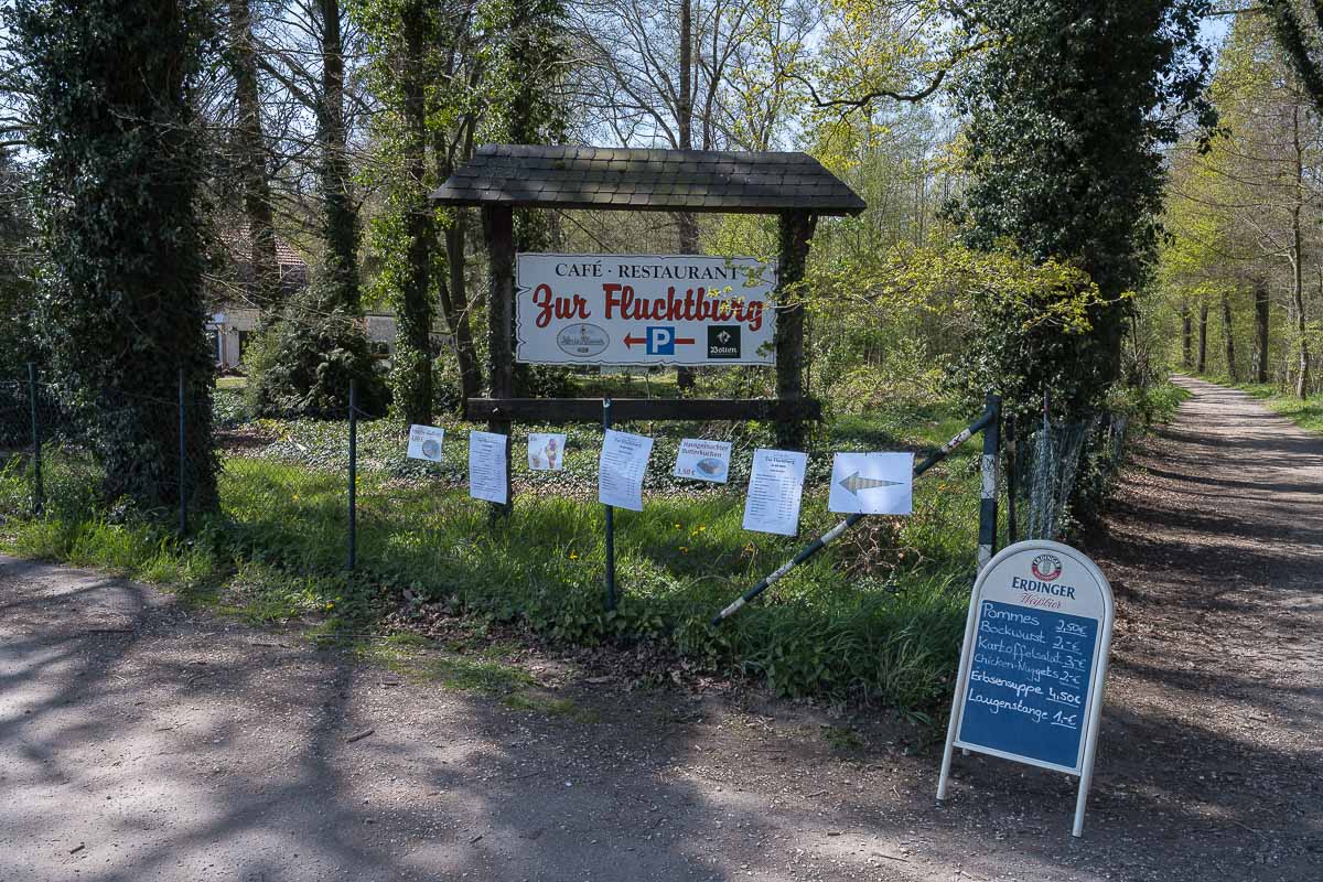 Am Landgasthof „Zur Fluchtburg“ wurde alles mögliche (Getränke, Kartoffelsalat, Bockwurst, etc.) ToGo angeboten. Schade, meine Marschverpflegung hatte ich dabei. Nach Durchquerung eines kleinen Wäldchens erreicht ich die Niers. Von nun an ging es an diesem Flüsschen entlang. Eine wirklich schöne Strecke. Hier waren einige Radfahrer unterwegs. Überhaupt : die ganze Runde könnte auch mit dem Rad zurückgelegt werden. Wanderer begegneten mir keine.