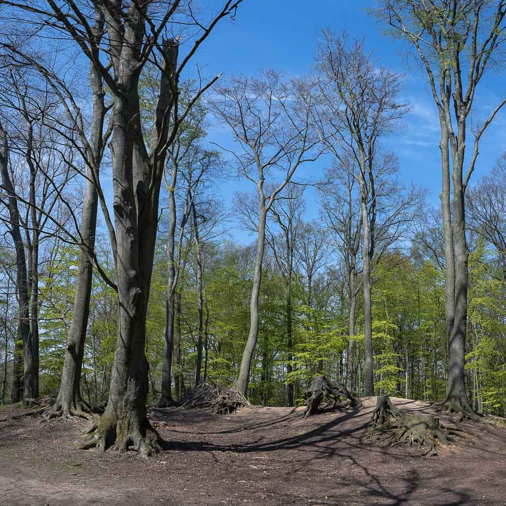 Im März 2021 wanderte ich hier für 14 km durch den Wald aber auch über offenes Gelände. Auch hier nur flaches Gelände.