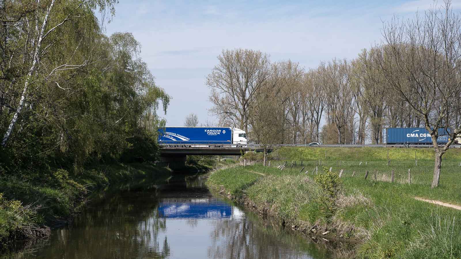 Bis zur Autobahn A40 verläuft der Weg weiter entlang der Niers, danach ein kurzes Stück parallel zur Autobahn.