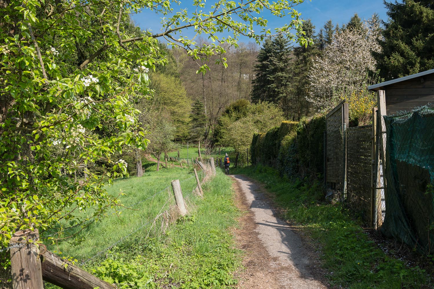 Nachdem wir den oberen Stausee hinter uns gelassen hatten, querten wir die Kreisstrasse 9 und passierten anschließend Unterwietsche. Der schmale Weg nach Oberwietsche geht oberhalb des Weltersbach entlang.