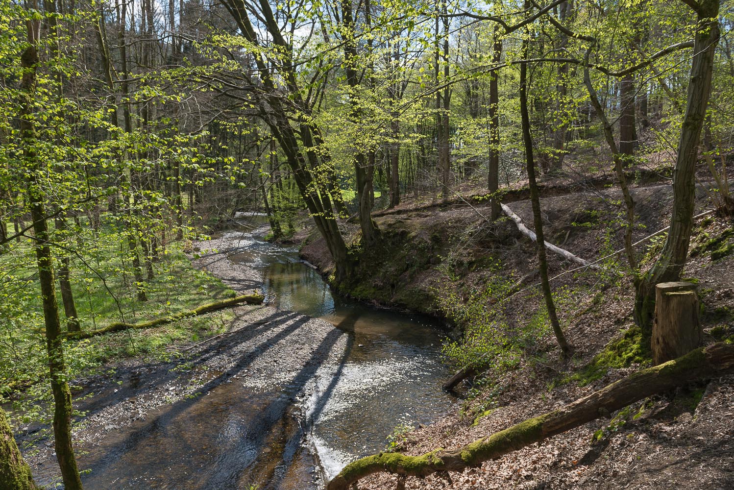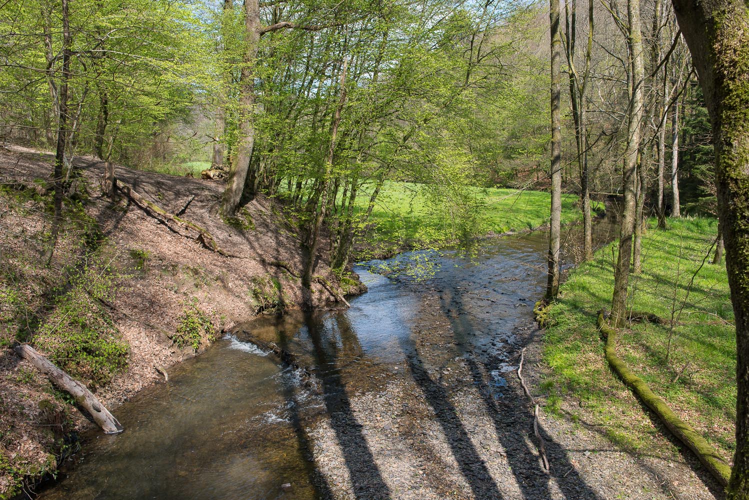 Für das sehr sonnige Wetter wars auch ideal, weil meist waldkühl. Der Anteil an Asphalt ist zum Glück gering. Hinter Stumpf haben wir eine andere Wegführung gewählt, näher am Pantholzer Bach, die uns etwa 1,5 km Strasse erspart hat. Insgesamt sehr schöne dreieinhalb Stunden.