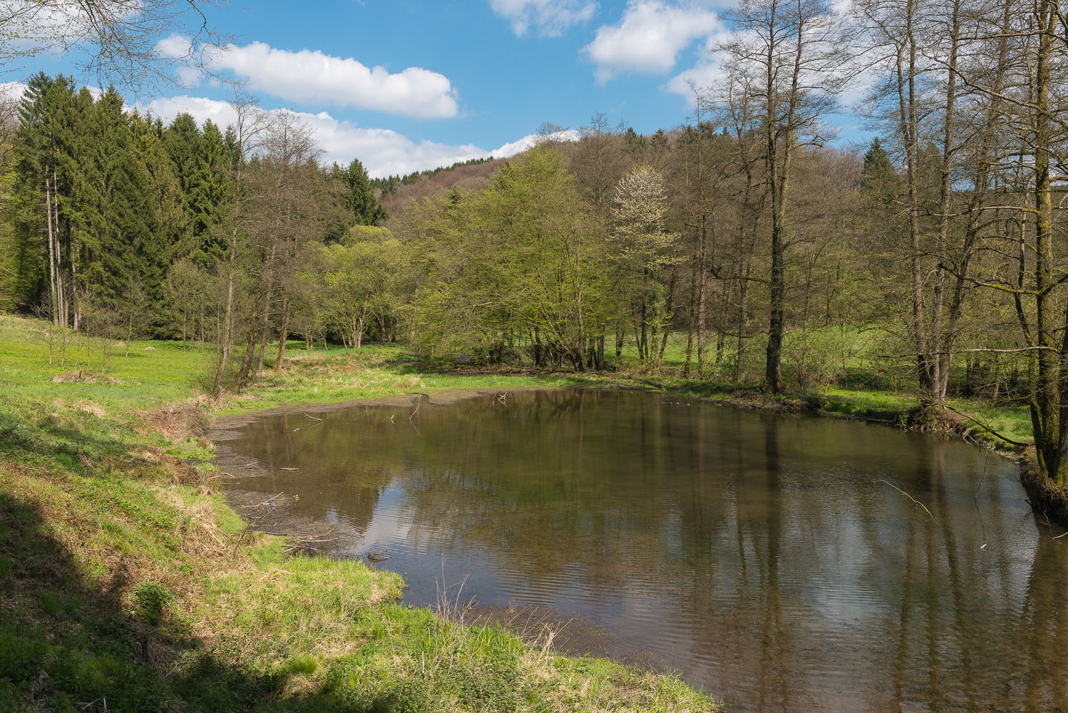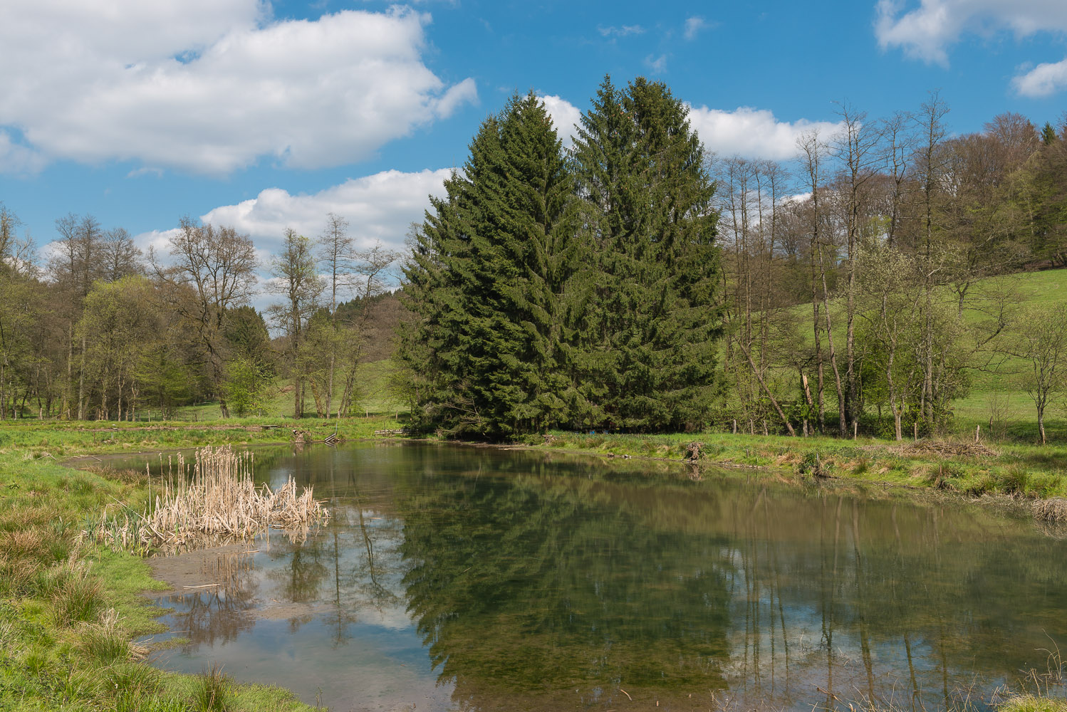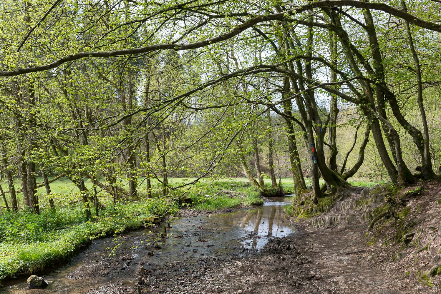 Das war eine wirklich tolle Wanderung, danke Helmut. Ich liebe ohnehin Wege, wo man von Bachplätschern begleitet wird und das hat man hier an einem großen Teil des Wegs. Für unsere Mittagsrast hatten wir direkt westlich des Efgesberg die ideale Bank gefunden: Mit Blick auf Wald, Wiese und plätschernden Bach – Herz was willst du mehr.
