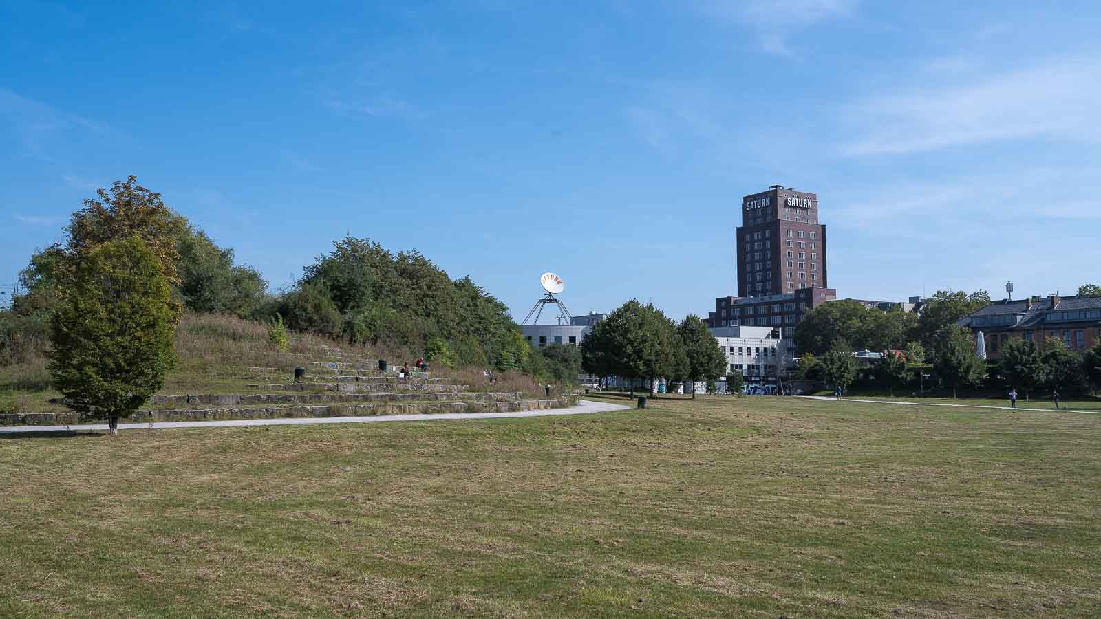 Kurz vor dem Medienpark kamen wir an einem großen Spielplatz vorbei der allerdings recht verwaist war. Schade, die große Rutsche hätte es sicher verdient benutzt zu werden. Aber weder Petra noch ich nahmen die Herausforderung an.