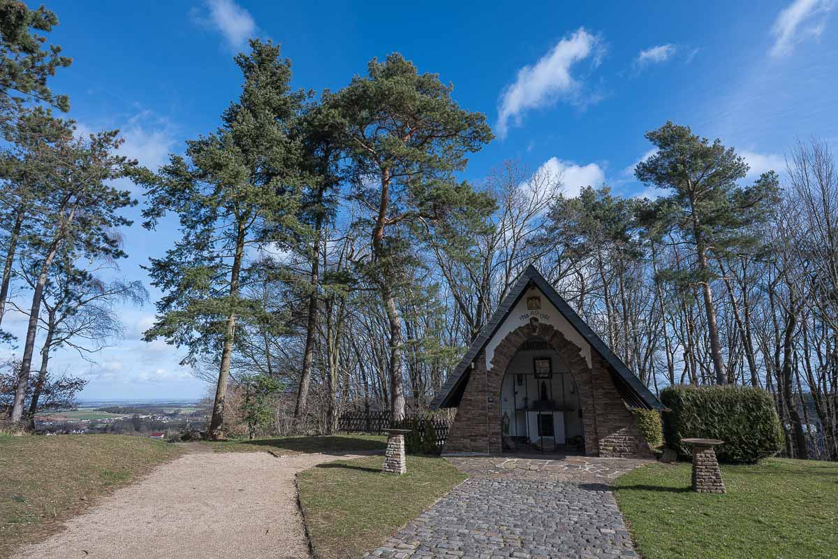 In der Gegend um Kommern / Mechernich wurde jahrhundertelang Bergbau betrieben. Daher wundert es mich nicht das man der Schutzheiligen der Bergleute (St. Barbara) hier eine Kapelle erbaut hatte. Von dort aus hat man eine tolle Aussicht über Kommern und einen Teil der Voreifel.