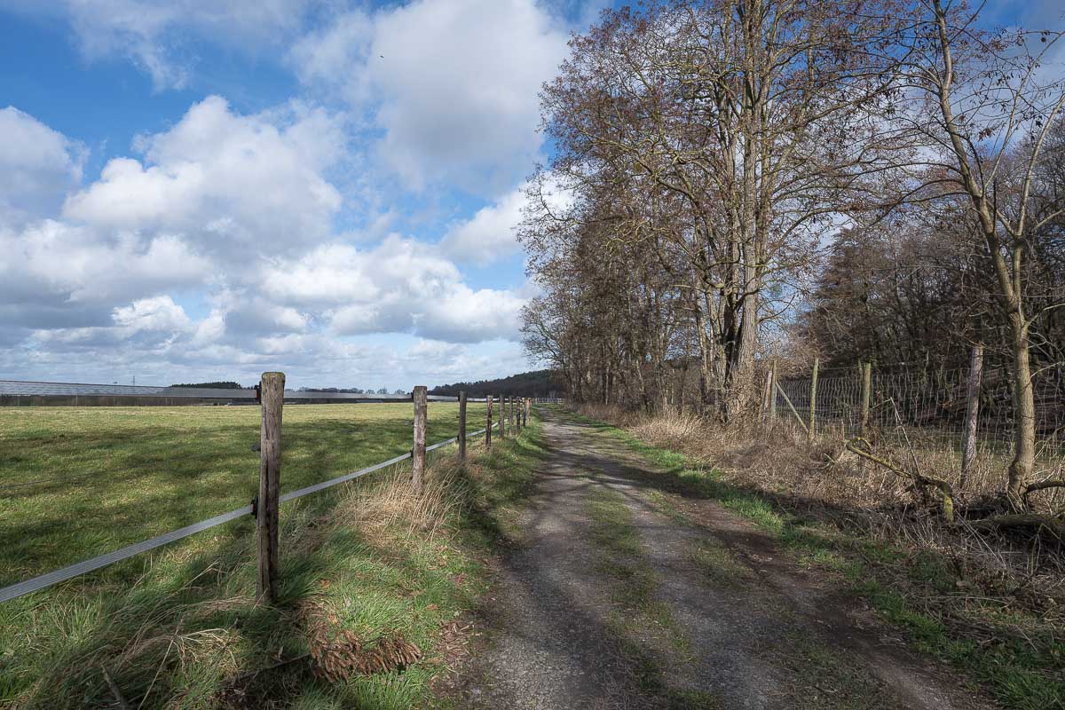 Nachdem ich den nördlichen Teil von Mechernich mit der Kapelle hinter mir gelassen hatte umrundete ich Kommern-Süd und erreichte den Wildpark Kommern. Für Familien mit Kindern sicherlich ein lohnendes Ausflugsziel. Die hatten trotz der Jahreszeit geöffnet und ich sah tatsächlich 2 Familien die dort mit ihrem Nachwuchs und einem Bollerwagen unterwegs waren.