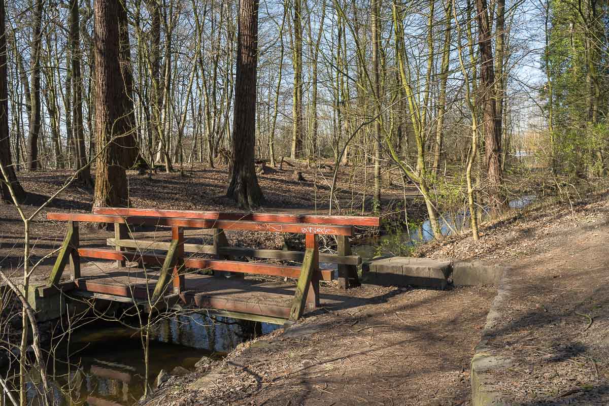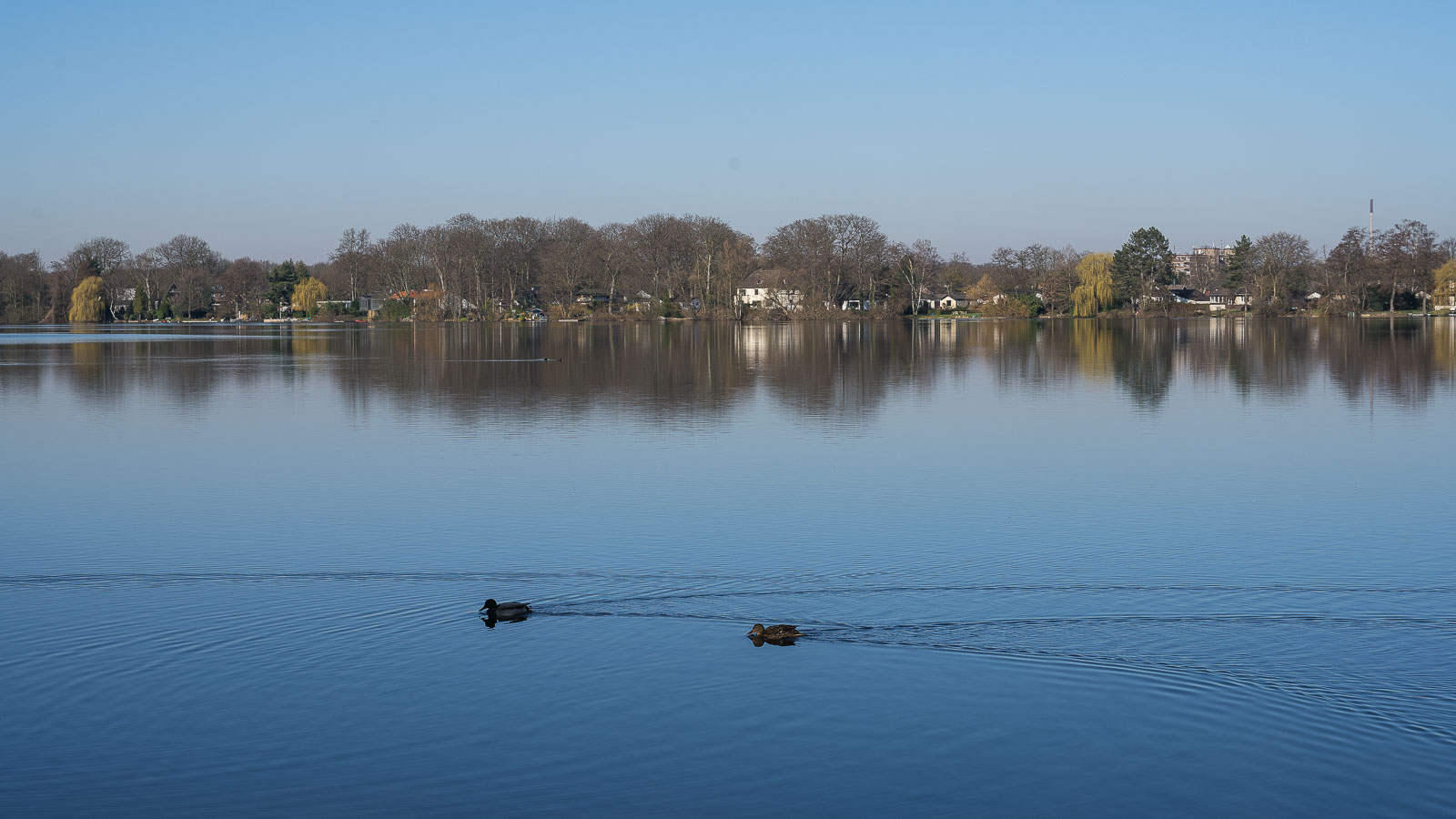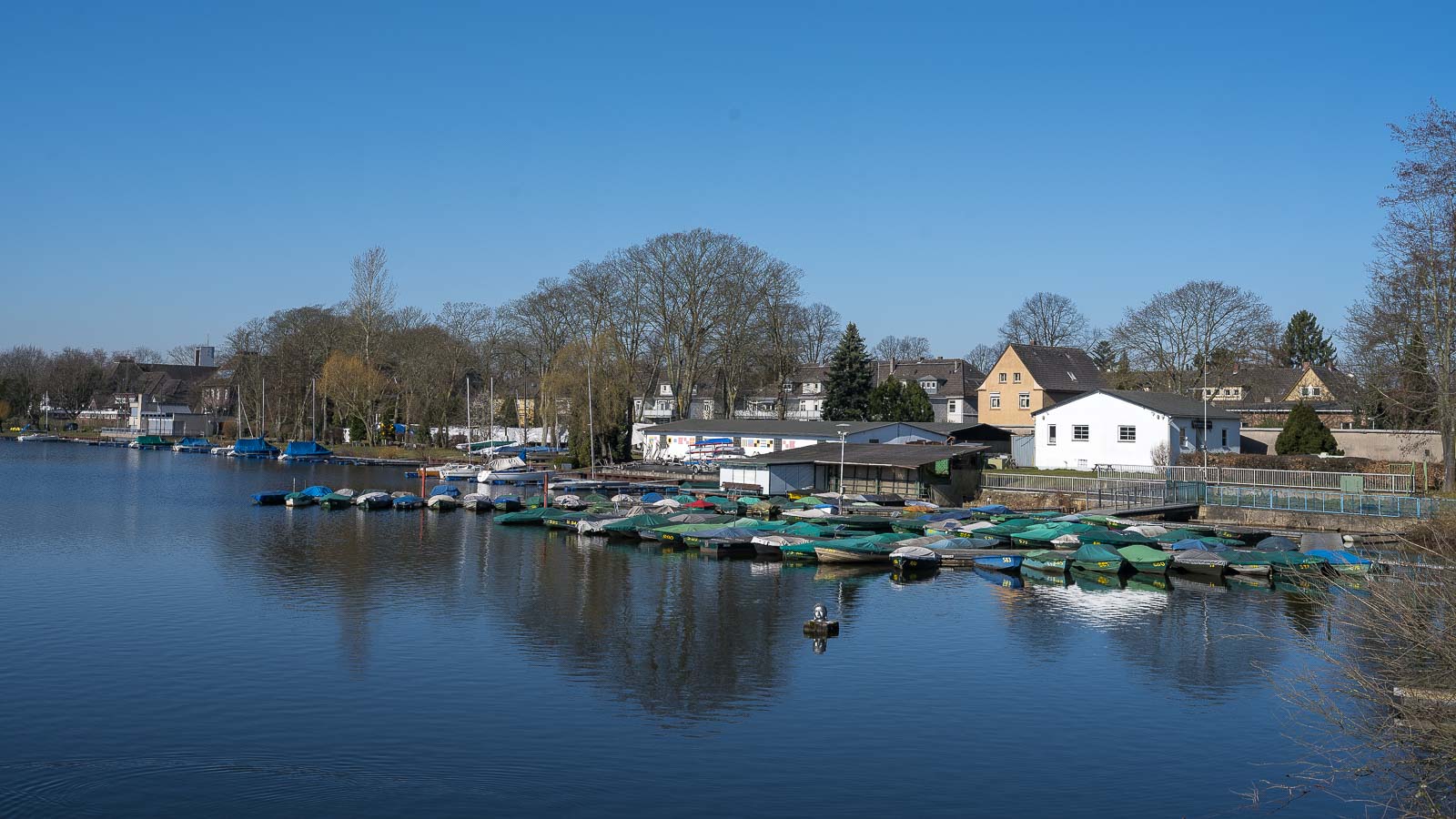 Vom Parkplatz aus gelangte ich zunächst zum Strandbad am Wolfsee. Bis das öffnet werden sicherlich noch einige Monate vergehen. Ufernah verlief der Weg entlang des Wambachsees. Auf dessen Nordseite waren einige repräsentative Villen zu bestaunen. Hinter einem kleinen Sportplatz bog ich dann rechts ab nach Wedau, was ich mal als „bessere Duisburger Wohngegend“ bezeichnen würde. Es gab da viele schöne ältere Häuser, aber die Neubauten erinnerten mich schon eher an „Palazzo Prozzi“.