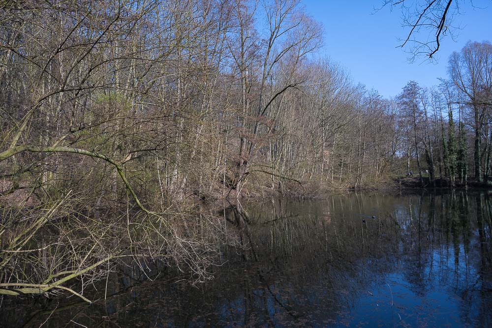 Nach einer knappen Stunde Anfahrt fanden wir auf Anhieb einen Parkplatz und starteten von dort unsere Runde entgegengesetzt zum Uhrzeigersinn. Das Wetter war bestens und wir waren daher nicht alleine unterwegs. Es dominierten eindeutig die Hundebesitzer. In dieser Anzahl habe sie auf einer Wanderung noch nie getroffen. Die Hunde waren alle sehr friedlich und wohlerzogen, auch Hinterlassenschaften sahen wir keine.