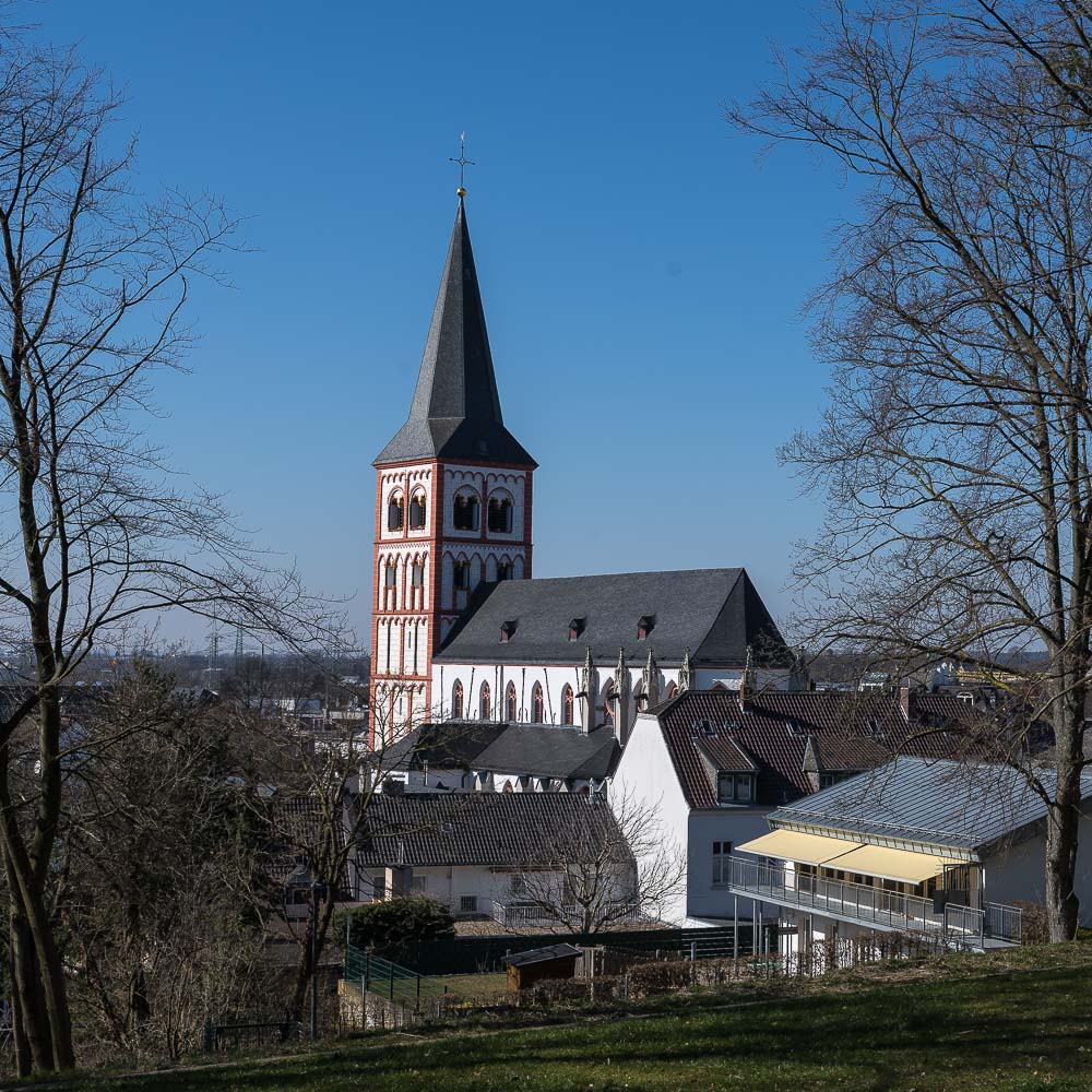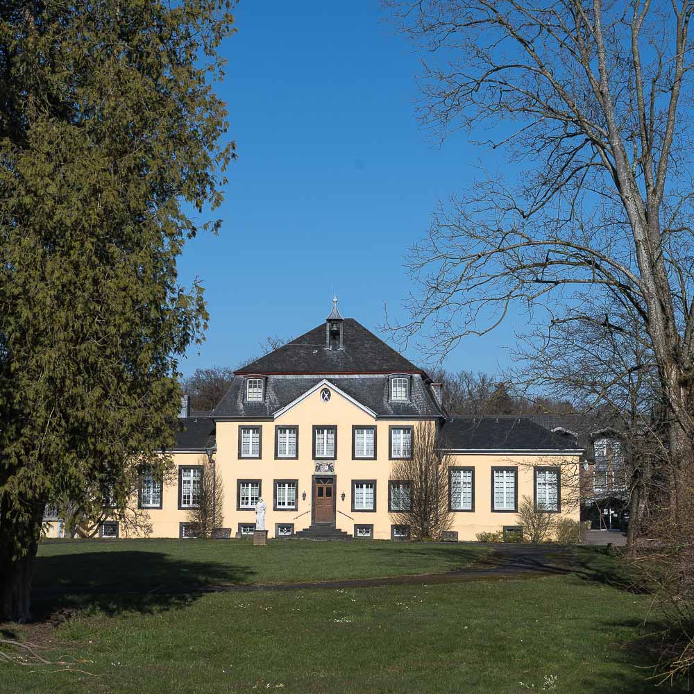 Erst nach Erreichen des Wolfsberges (110 m) wurde der Weg so langsam wieder schöner. Als wir dann erneut die A3 unterquerten, hatten wir das Schlimmste hinter uns. Entlang einer schnurgeraden Allee ging es auf das Domizil der Alexianer Bruderschaft zu. Die unterhält hier in einem ehemaligem Kloster eine Senioreneinrichtung für Demenzkranke.
