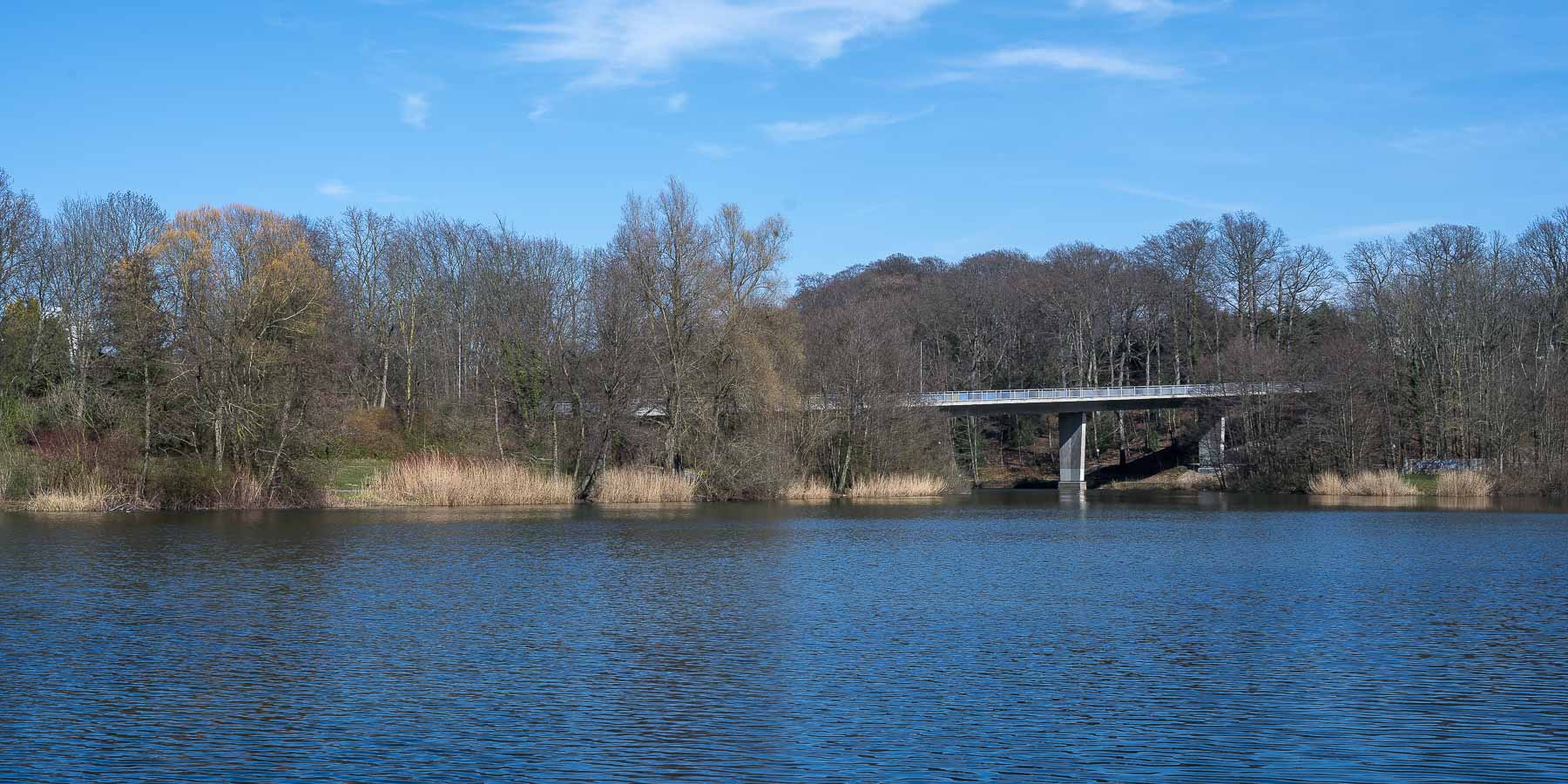 Hinter dem Schlosspark überquerten wir den Carl-Carsten-Ring über eine lange Rampe und gelangten vorbei am Freiherr vom Stein Gymnasium in ein schönes Neubaugebiet. Nachdem wir anschließend die Oulustrasse querten kamen wir im Mühlenbachtal an und wanderten dort in Richtung Fette Henne. Wegen des schönen Wetters waren viele Spaziergänger, Jogger, Radfahrer etc. unterwegs. Die Radwege waren konsequent getrennt von den Fußwegen und so kam man sich nicht in die Quere.
