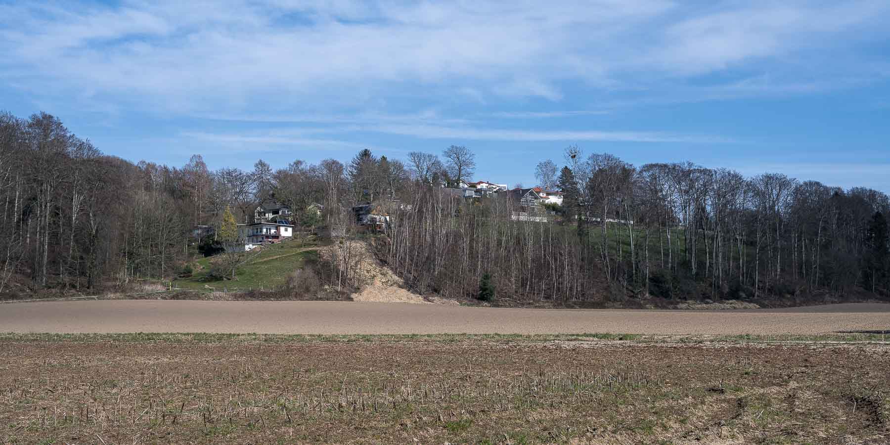 Auf Aufstieg auf den nächsten Hügel ging es durch den Wald. Hier hatte man eine mächtige Schneise geschlagen um eine Erdgasleitung zu verlegen. Diese ist im Rheinland erforderlich da man von dem niederländischen aber auch deutschem L Gas auf norwegisches, russisches und Weltmarkt Erdgas (H Gas) umstellen muss.