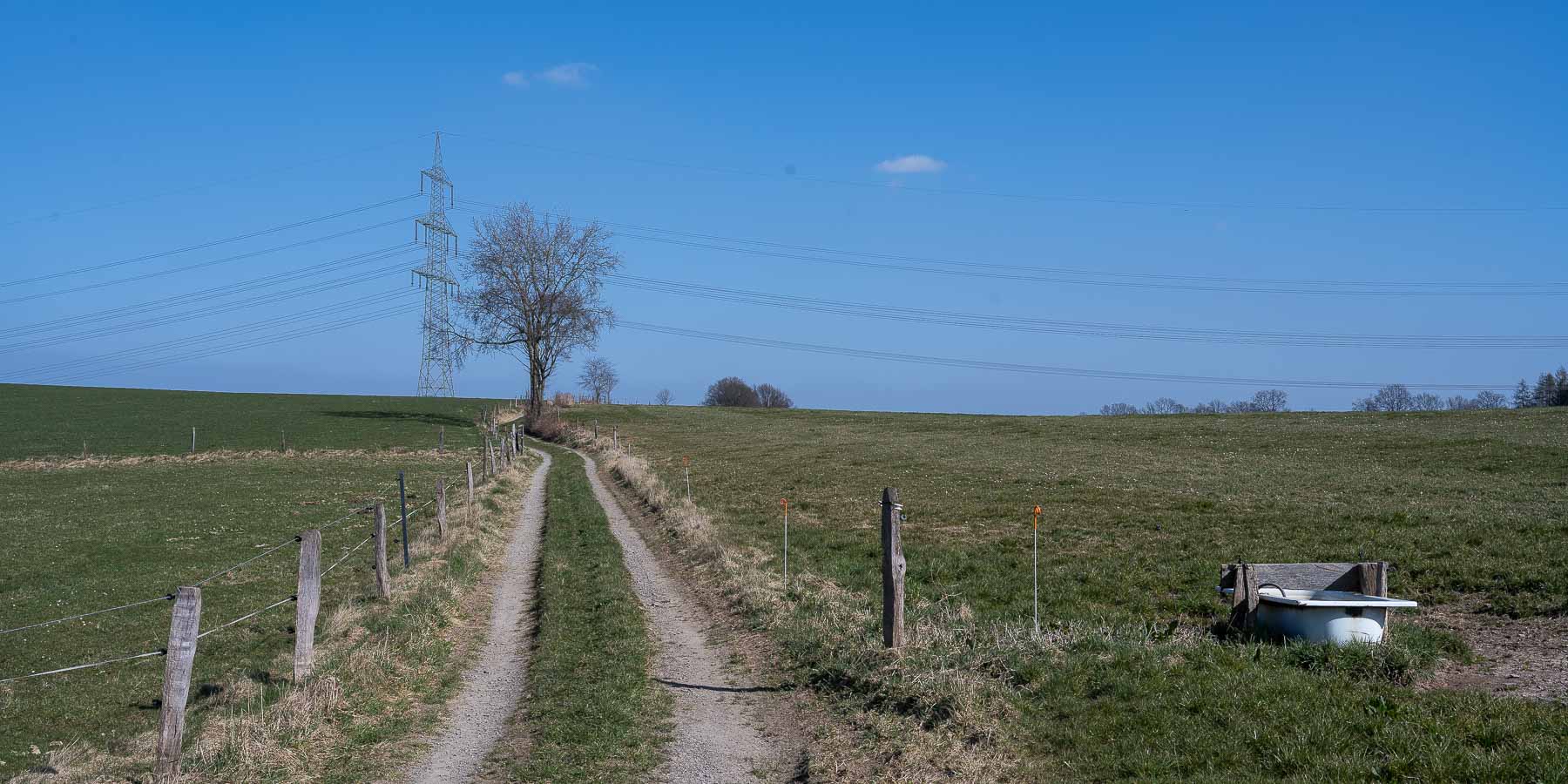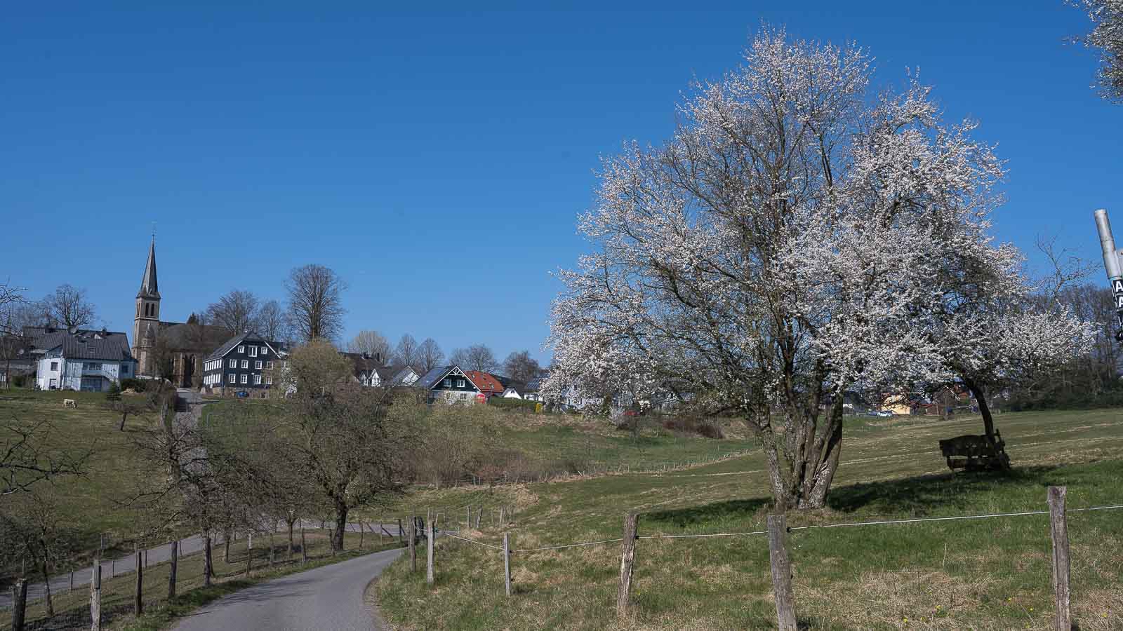 Am Ortsausgang von Thier hatte ich erstmal Gelegenheit zu einigen Blümchenfotos. Es waren meinen ersten Weidenkätzchen des Jahres dabei. Die Wanderung ging über offenes Gelände und bot schöne Aussichten über das Bergische Land. Unterwegs kam ich an diversen Gebetstätten bzw. gestifteten Gedenksteinen vorbei von denen ebenfalls der ein oder andere abgelichtet wurde. Im Örtchen / Gehöft Drecke konnte ich ein neugieriges Pferd ablichten welches sich gleich in Bewegung setzte als es mich von seiner Weide aus kommen sah. Ansonsten war auf der gesamten Wanderung, von den Ortsdurchquerungen mal abgesehen, nicht viel los. Ich war der einzige Wanderer der hier unterwegs war.