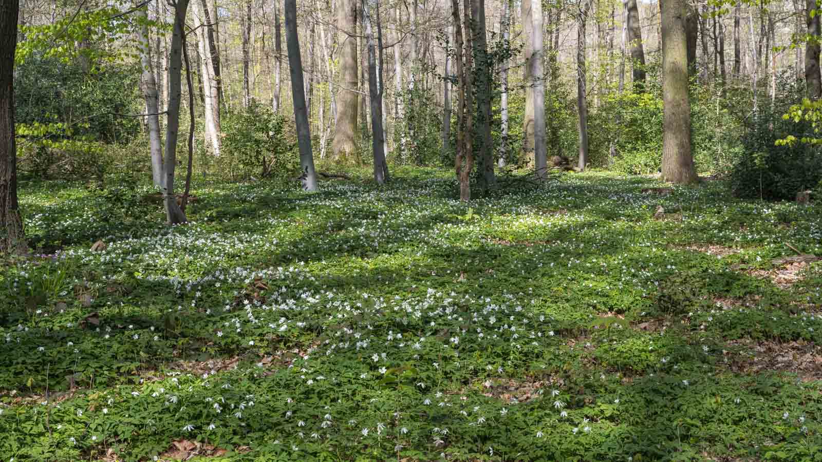 Dieses Teilstück bis Rheinbach fand ich am schönsten. Der Boden des lichten Waldes war mit einem Blütenteppich aus Buschwindröschen bedeckt und ich fand auch eine schöne Pausenbank an einem kleinen See um meine Marschverpflegung zu konsumieren. So schön kann Wald sein !!