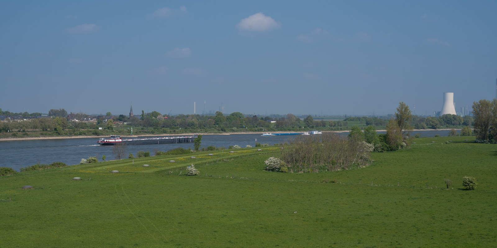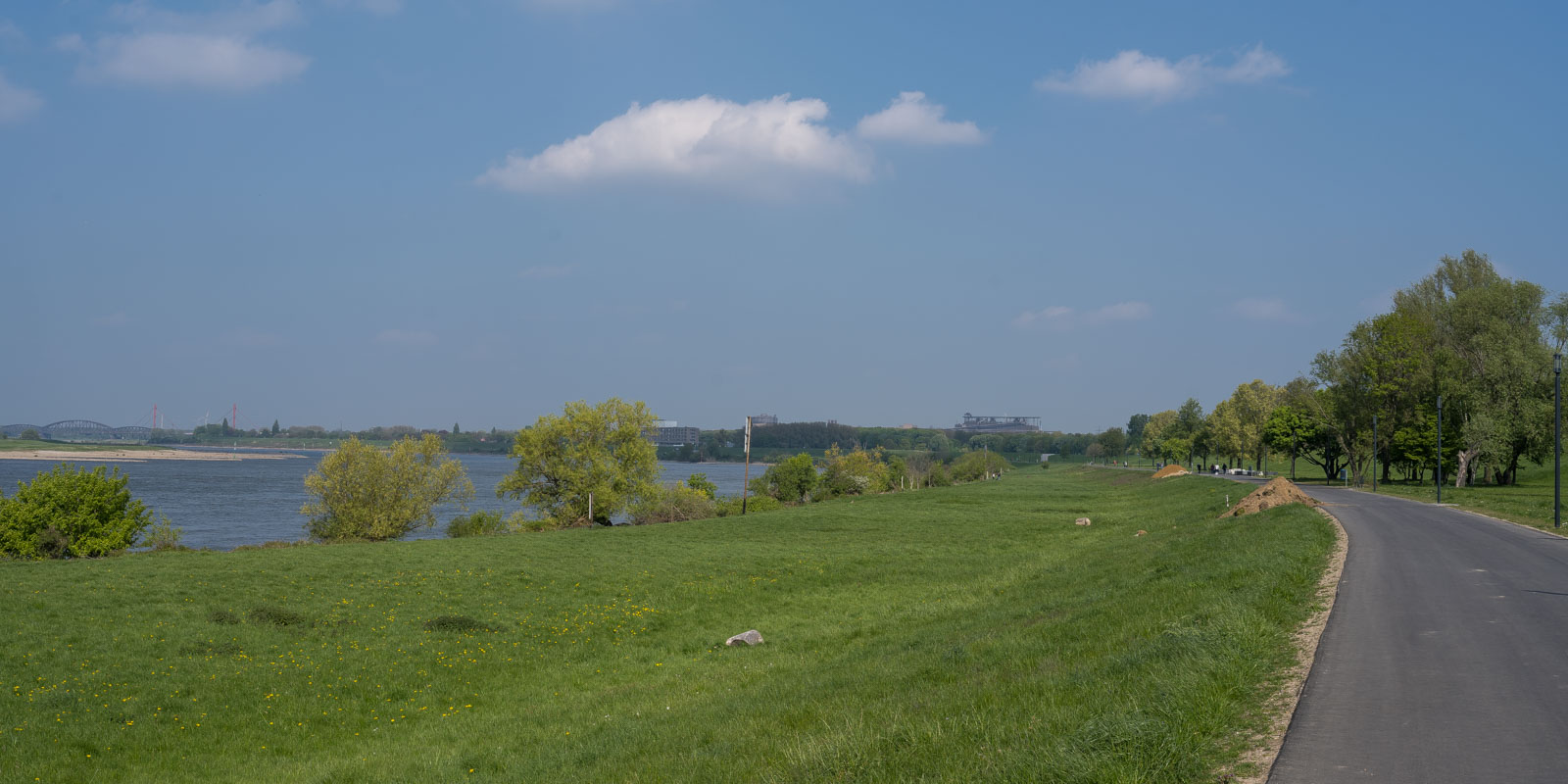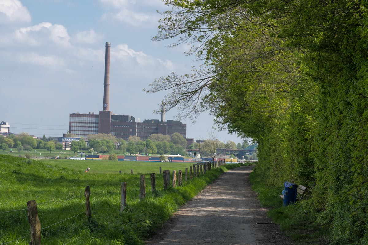 Hier wanderten wir in 2019 auf der Duisburg gegenüberliegenden Rheinseite. Eine 14 km lange Rundwanderung in der Landschaft am Niederrhein. Die Strecke verläuft nur wenig stromabwärts von der hier vorgestellten Wanderung, sie ist von der Art her eher ländlich.