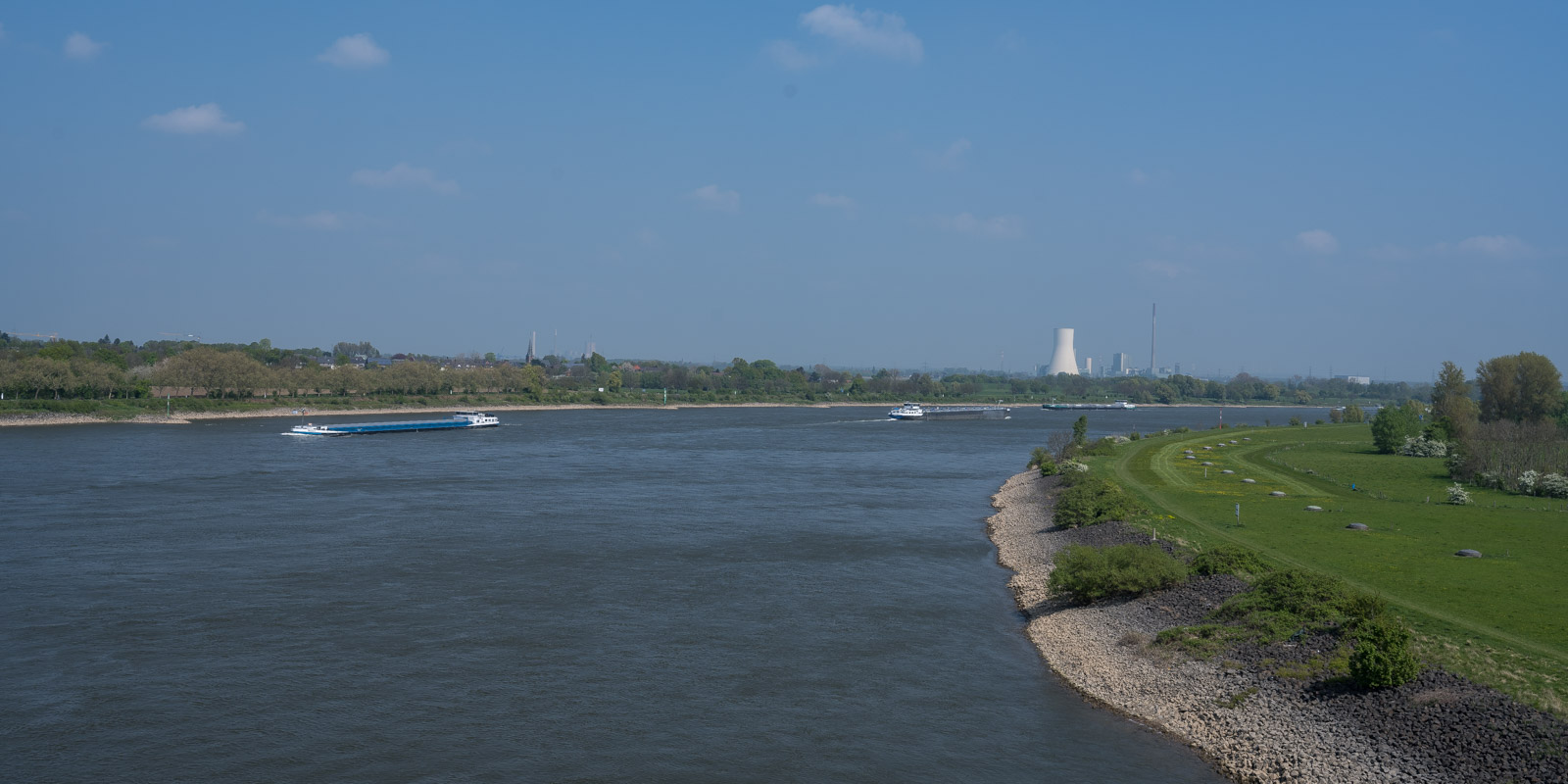 Natürlich ist es nicht das Allerschönste neben einer viel befahrenen Autobahn einen Fluss zu überqueren. Unterwegs machte ich ein paar Bilder von den Schiffen, war aber froh als wir dieses unangenehme Teilstück hinter uns hatten.