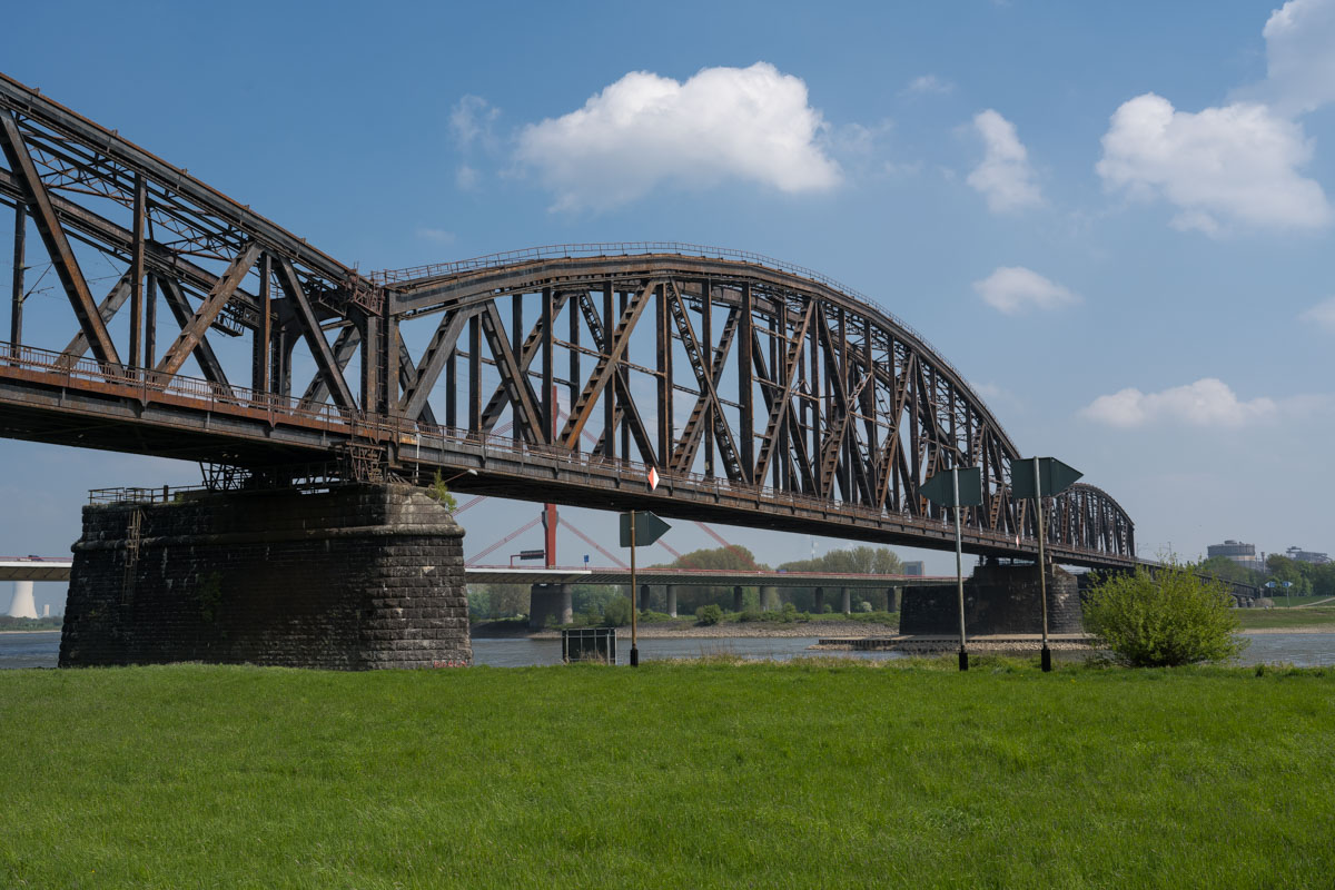 Dieser hätte über eine historische Hubbrücke ein Hafenbecken überquert. Kurz bevor wir dieses erreichten, machte uns eine entgegenkommende Dame darauf aufmerksam das die Brücke gesperrt sei. Also mußten wir umkehren um uns eine alternativ Route zu suchen. Über den Rhein mußten wir ja auf alle Fälle, denn dort stand ja unser Auto. Die Friedrich-Ebert-Brücke war zum Glück nicht gesperrt, aber der Weg dorthin war auch nicht der große Bringer.