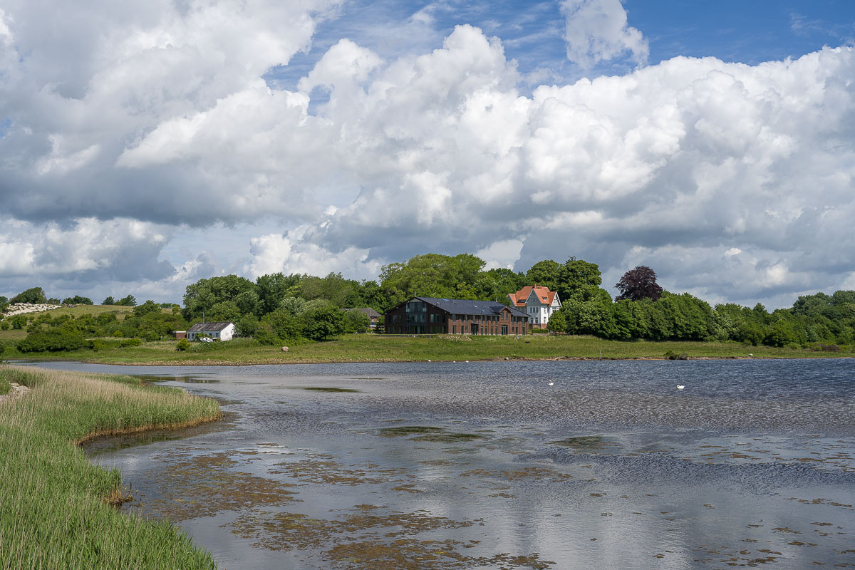 Vom Wendeplatz aus erreichten wir schon bald das Fährhaus Holnis. Dort wollten wir für einen verspäteten Café / Cappuccino einkehren. War leider nichts, die hatten zu. Die umstehenden Häuser machten alle einen urigen Eindruck. Besonders das gegenüberliegende, Reet gedeckte Haus hatte es mir angetan.
