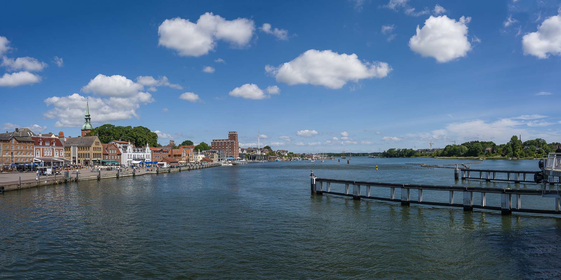 Die Brücke war gerade hochgeklappt um einige Schiffe und Boote passieren lassen. Während der kurzen Wartezeit genossen wir von der Brücke aus den tollen Blick auf die Promenade von Kappeln (siehe Beitragsbild).