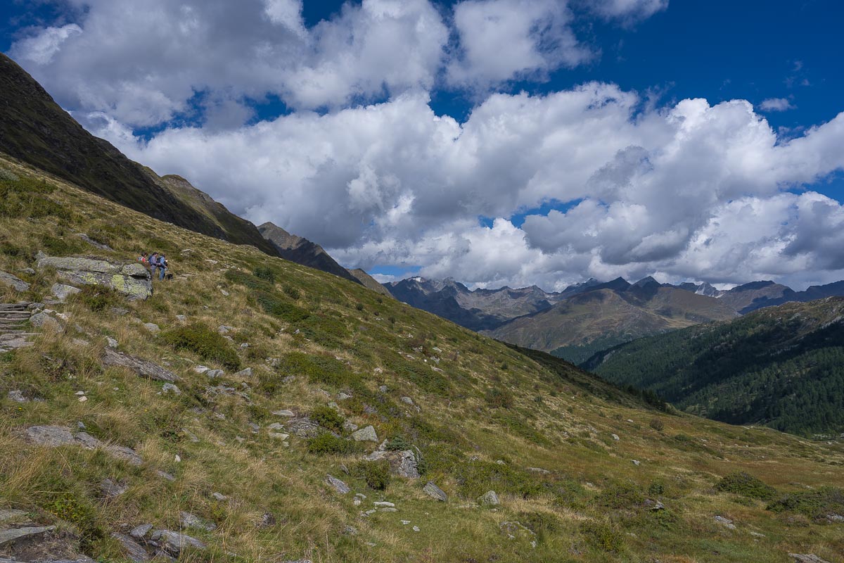 Der höchste Punkt unserer Wanderung lag bei etwa 2150 m und bot eine schöne Aussicht über das Seeberger Tal. Dort pausierten wir dann nochmals und verzehrten unsere Marschverpflegung.