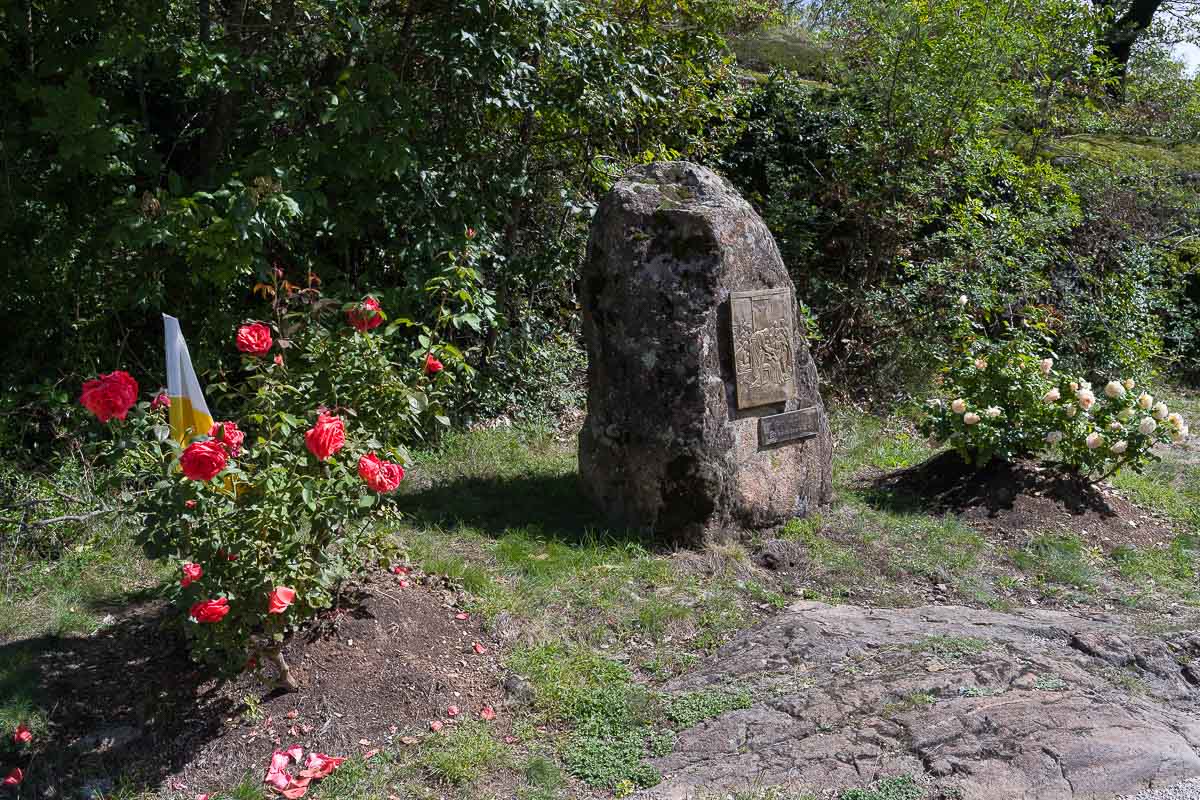 Vorbei an einigen Kastanienwäldchen erreichten wir den Ortsrand von Naraun und bogen dort an der Autostrasse links ab der wir für ca. 200 m folgen mußten bis es an einem Parkplatz nochmals links ab in den Wald und bergauf zu dem Kapellenhügel ging. Der breite Weg zur Kapelle ist anscheinend ein Prozessionsweg an dem sich in einigen Abständen mehrere Gedenkstätten befinden.