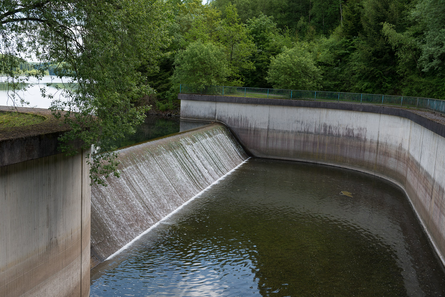 Nach einer guten Stunde, in der man jeden Seitenarm der Talsperre ablaufen muss, erreicht man die imposante Staumauer der Vorsperre. Hier laden einige Bänke für eine Rast ein und man kann den schönen Ausblick über den Hauptstausee und den der Vorsperre genießen. Der Wasserstand in der Vorsperre wird durch einen Zwangsüberlauf konstant gehalten, wohingegen der im Hauptsee je nach Niederschlagsmenge variiert.