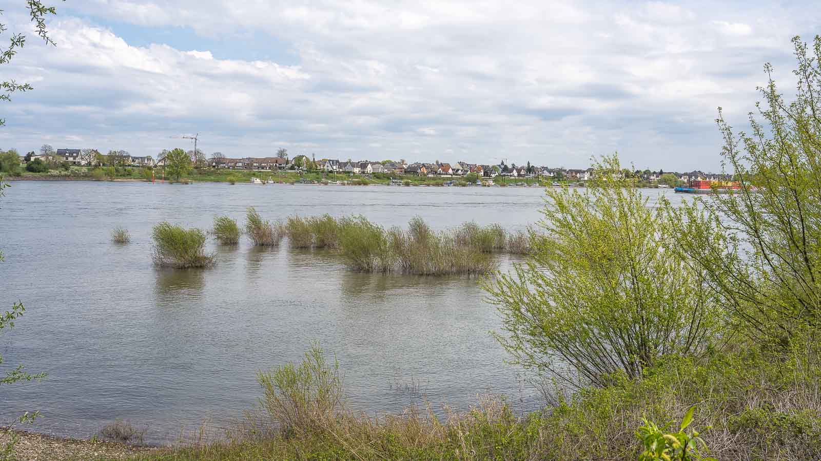 Am Rhein angekommen wurden einige Fotos gemacht. Auf der anderen Flussseite liegen Monheim (etwas flussabwärts) und Hitdorf (schräg gegenüber). Auf der gesamten geschilderten Wanderung gibt es keine Einkehrmöglichkeiten. Wer möchte kann aber etwas weiter flussaufwärts die Fähre nach Hitdorf nehmen und sich dort verköstigen. Für uns kam dies heute nicht in Frage da wir zu spät gestartet waren.