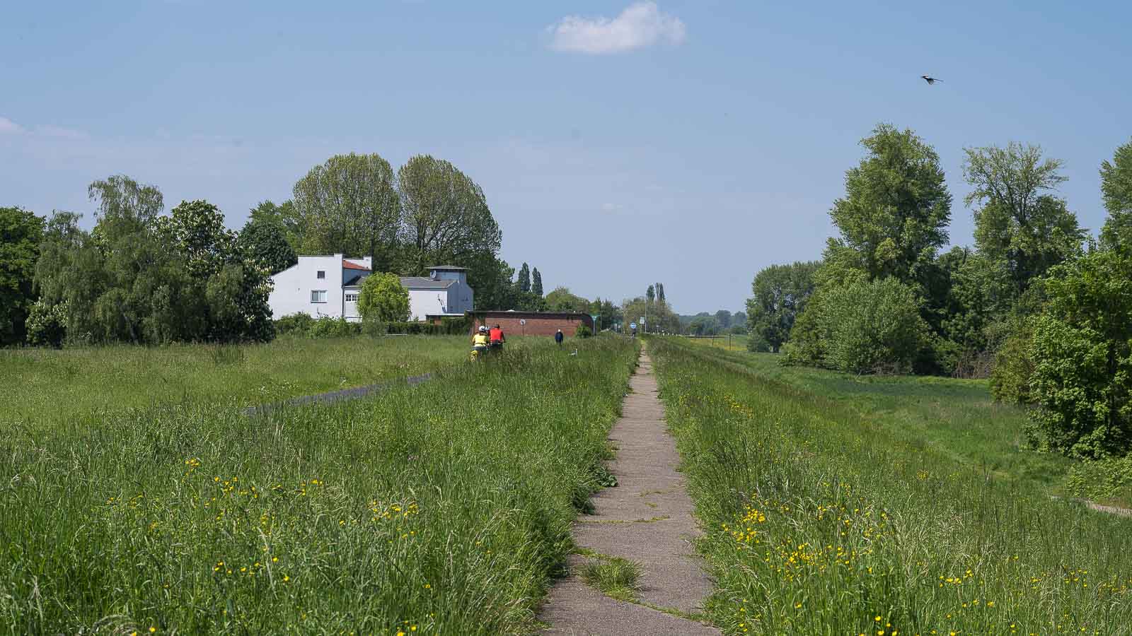 Nach den Regenfällen der letzten Tage trauten wir uns immer noch nicht in Richtung Bergisches Land oder Eifel. Aus einem kürzlich neu erstandenen Wanderführer hatte ich uns statt dessen eine Runde bei Meerbusch am Rhein ausgesucht.