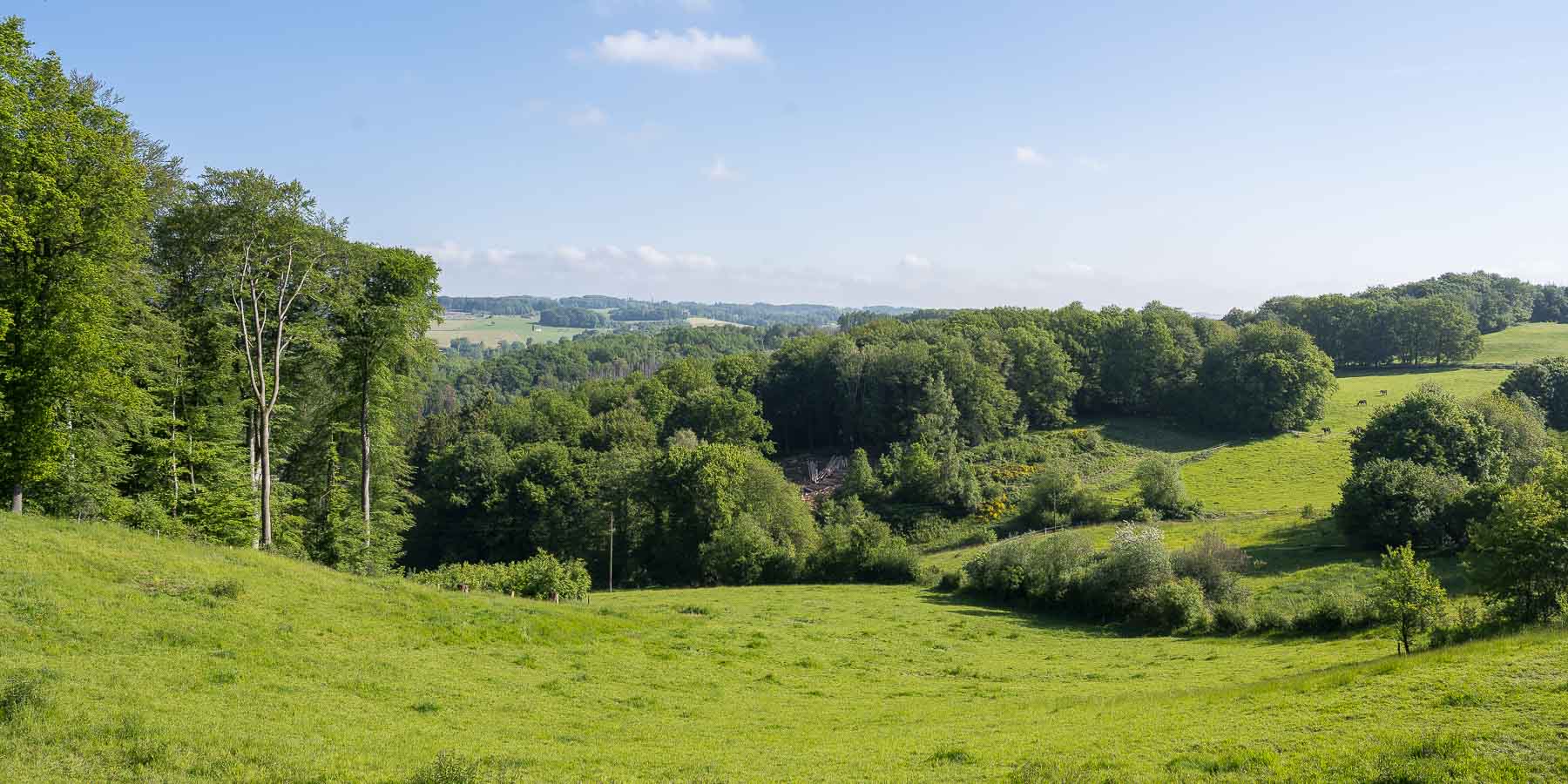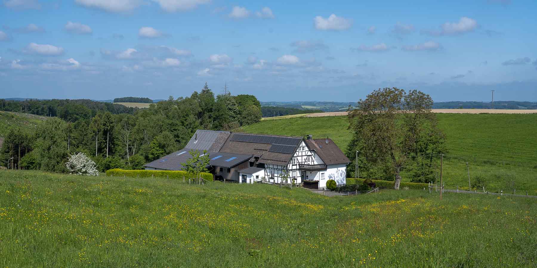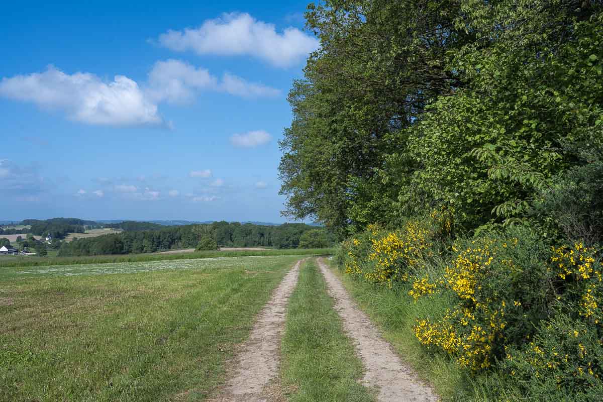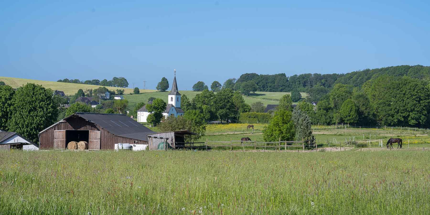 Die Wanderung führte oberhalb des Flugfeldes durch den Wald hindurch. Trotzdem hat man an einigen Stellen einen tollen Fernblick. Anschließend wanderte ich bergab in das Lennefer Bachtal und kam dort an einem Parkplatz des Freilichtmuseums zurück auf die L299. Von dort ging es ein kurzes Stück bergauf zur Nordseite des Freizeitparks. Für die Rückfahrt nach Leichlingen nahm ich wieder die Strecke über Neschen und genoß die weiter die schöne Aussicht.