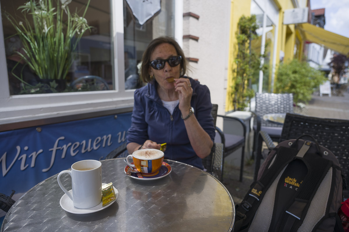 Die Wanderung folgte weitgehend den Europäischen Fernwanderwegen E1 und E6. Trotzdem waren dort nur wenige Wanderer unterwegs, gelegentlich begegneten uns Radfahrer für die der breite Wanderweg ebenfalls geeignet war. Da kaum Wolken am Himmel auftauchten, waren wir froh das der Weg durch Wald oder an schützenden Alleen entlang verlief.