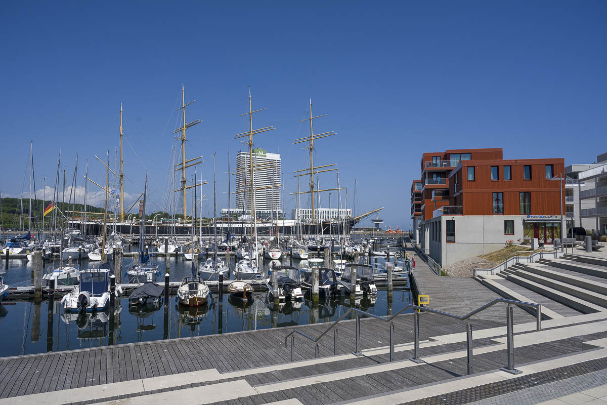 Nach der Umrundung der als Naturschutzgebiet geschützten Südspitze verließen wir die Küstenlinie und liefen wieder zurück ins Zentrum der Halbinsel. Am nördlichen Ende der Halbinsel kamen wir an den Jachthafen von Priwall. In dessen Umgebung gibt es einige Neubauten und die ein oder andere Einkehrmöglichkeit. Das nutzten wir für eine kleine Pause mit Café – Cappuccino.