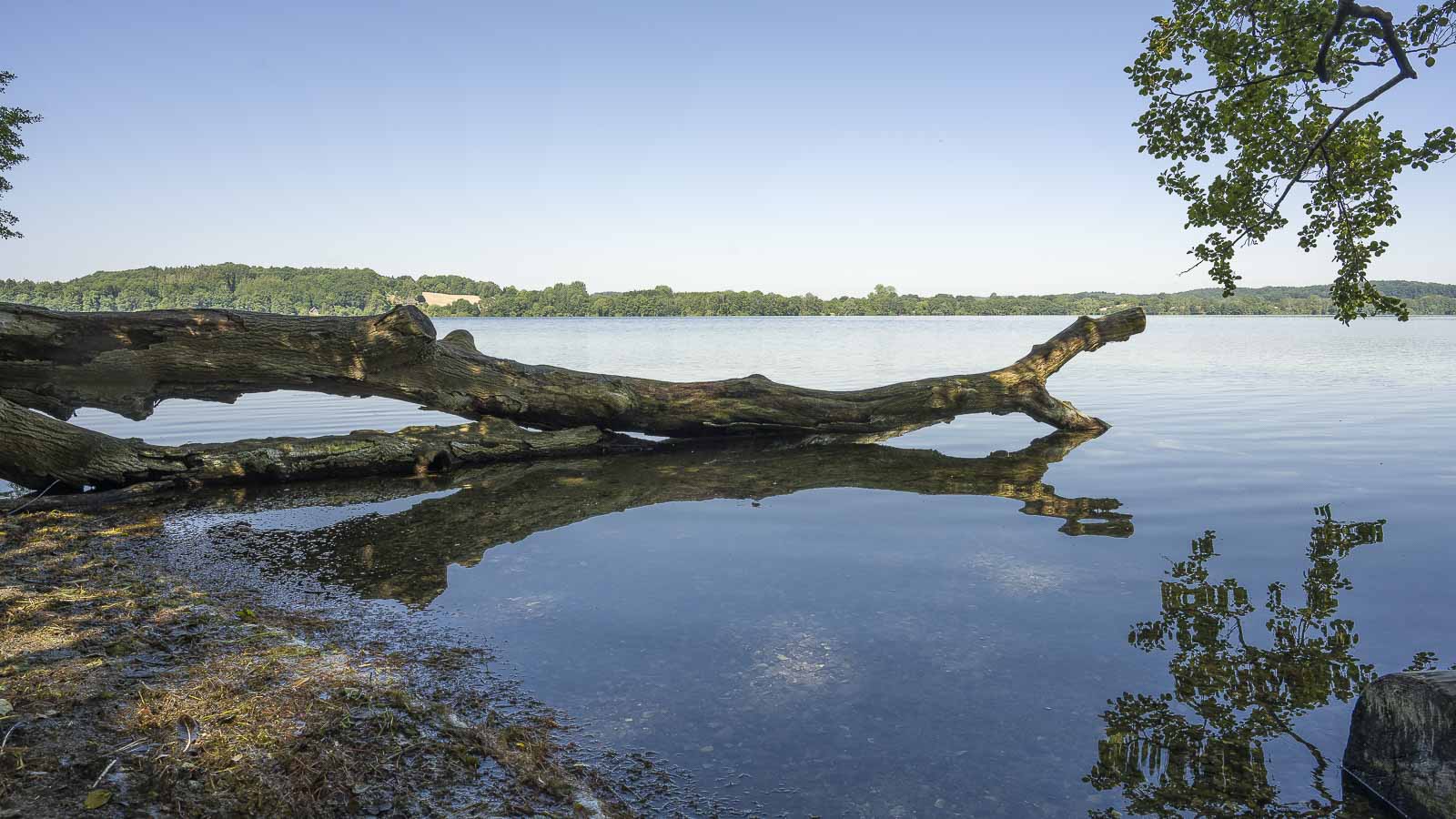 Nach dem Ende der Seepromenade führt der Weg in einen alten Buchenwald der nahe am See entlang verläuft. Gelegentlich gibt es einige Stellen an denen man für ein Foto an den See heran kann. Den besten Ausblick auf den Dieksee hat man aber am Anleger der 5-Seen-Rundfahrt in Niederkleveez.