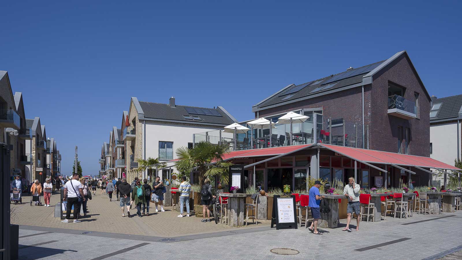Zu diesem Stil passte dann eine Seebrücke als Betonkonstruktion die mit Holzbohlen belegt war und etwa 200 m in das Meer hinein ragte. Trotzdem, die Aussicht war ganz nett. Von der Seebrücke aus wanderten wir in Richtung Jachthafen und durchquerten eine kleine Fressmeile. An derem Ende fanden wir ein Café wo wir uns für die folgende Wegstrecke stärkten.