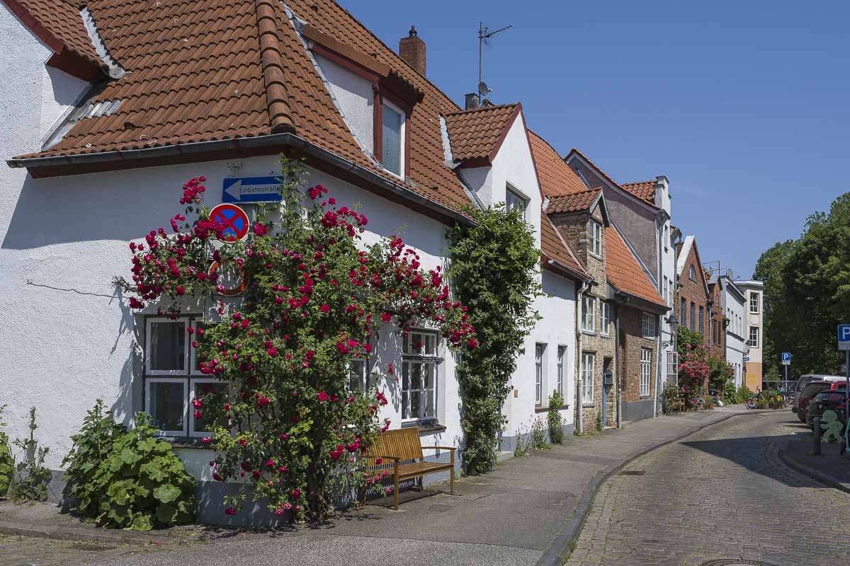 Vom Hauptbahnhof aus überquerten wir den Lübecker Stadtgraben an der Puppenbrücke und liefen zunächst entlang des Stadtgrabens bis zur Wallbrücke. Dort genossen wir den Blick auf den Dom und wanderten danach ein kurzes Stück entlang der Trave. Malerische Häuser mit engen Durchgängen und hübsche Hinterhöfe säumten unseren Weg.