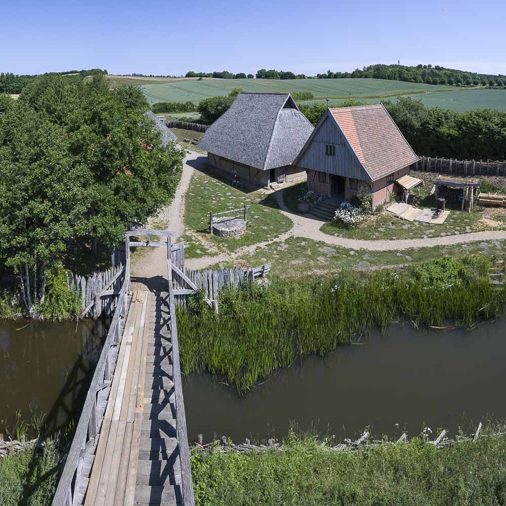 Unterwegs gibt es auf der Wanderstrecke nach meiner Open Street Map und laut dem Wanderführer nur eine einzige Einkehrmöglichkleit : das Restaurant Forsthaus Hessenstein. Laut Google haben die aber erst ab 17 Uhr 30 geöffnet. Für unseren morgendlichen Café / Cappuccino kam das also nicht in Frage. So machten wir bei der Anfahrt aus Malente kurz in Lütjenburg Stop und fanden am Marktplatz ein ansprechendes Café. Von dort bis zur Turmhügelburg, einem kleinen Freilichtmuseum nördlich von Lütjenburg, war es nur ein Katzensprung. Parken kann man an dem Freilichtmuseum.