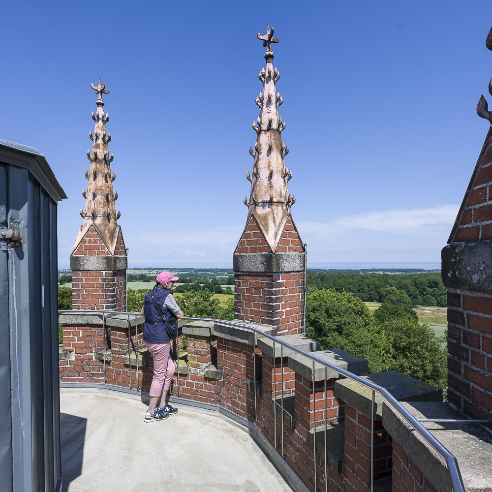 Nach etwa 5 km Wanderstrecke kamen wir an eine Abzweigung die zum Hessenstein führte. Dieser ist ein Aussichtsturm der auf dem 128 m hohem Pilsner steht. Er wurde ab 1839 erbaut und steht unter Denkmalschutz. Der Turm ist 17 m hoch und kann bestiegen werden. Man braucht dafür aber eine 1 Euro Münze um eine Drehtür zu öffnen. Wer keine entsprechenden Münze dabei hat kommt nicht rein und verpasst so die tolle Aussicht. Man kann bis zur Ostsee schauen, angeblich bis nach Dänemark. Auch einige der umliegenden Seen konnten wir von oben betrachten.