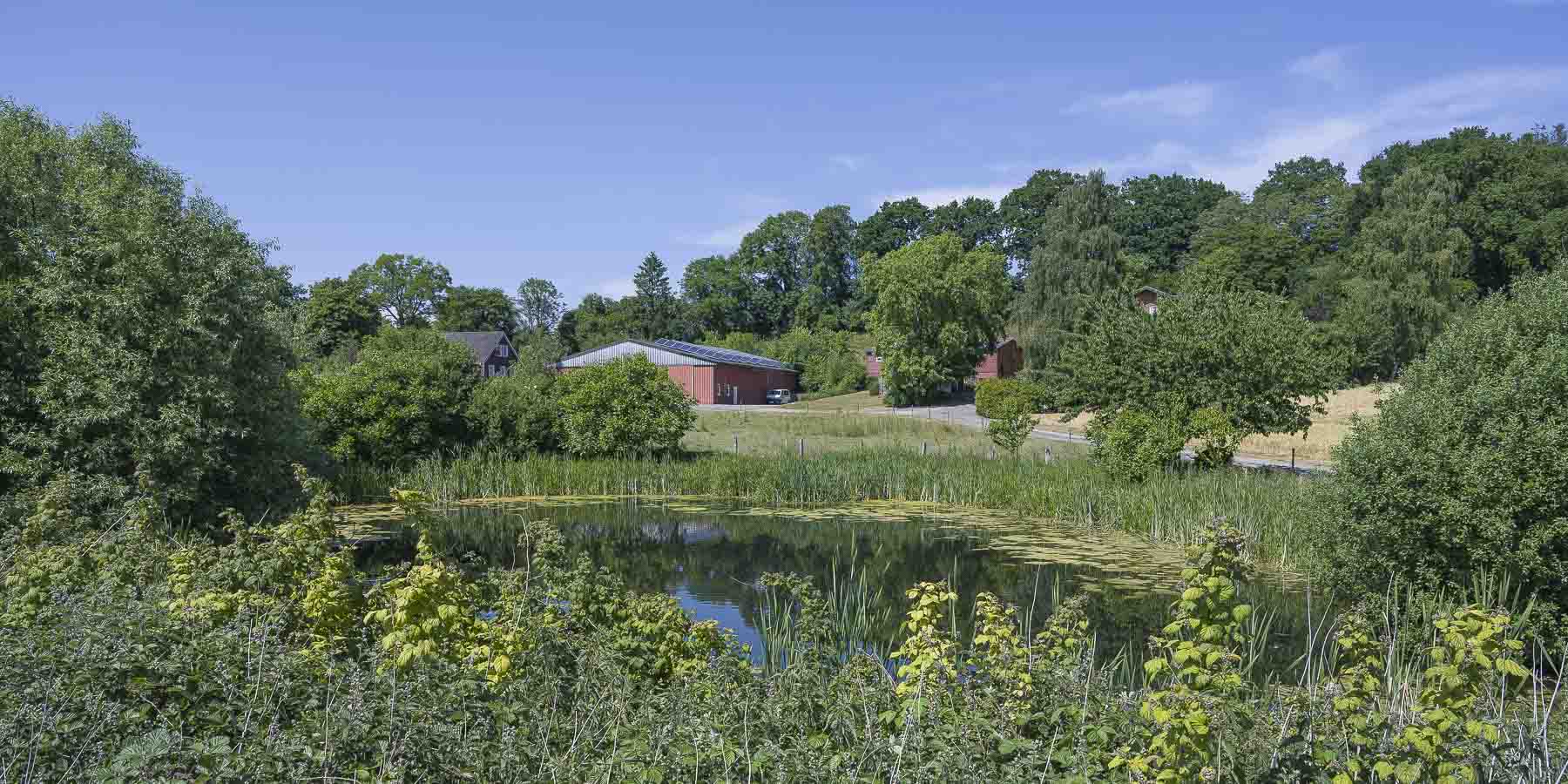 Nach dem kurzen Besuch starteten wir die eigentliche Wanderung. Über offenes Gelände ging es auf einem schönen, nicht fahrradtauglichem Wiesenweg zu einem Teich, an dem wir mit einem ziemlichen Gequake begrüßt wurden. Schon als Laien konnten wir erkennen, daß da unterschiedliche Frösche zugange waren. Auf einer Info Tafel wurden sie genannt : Teichfrosch, Laubfrosch, Moorfrosch, Grasfrosch und Erdkröte (wer glaubt ich hätte mir die alle merken können irrt, ich fotografierte die Info Tafel).