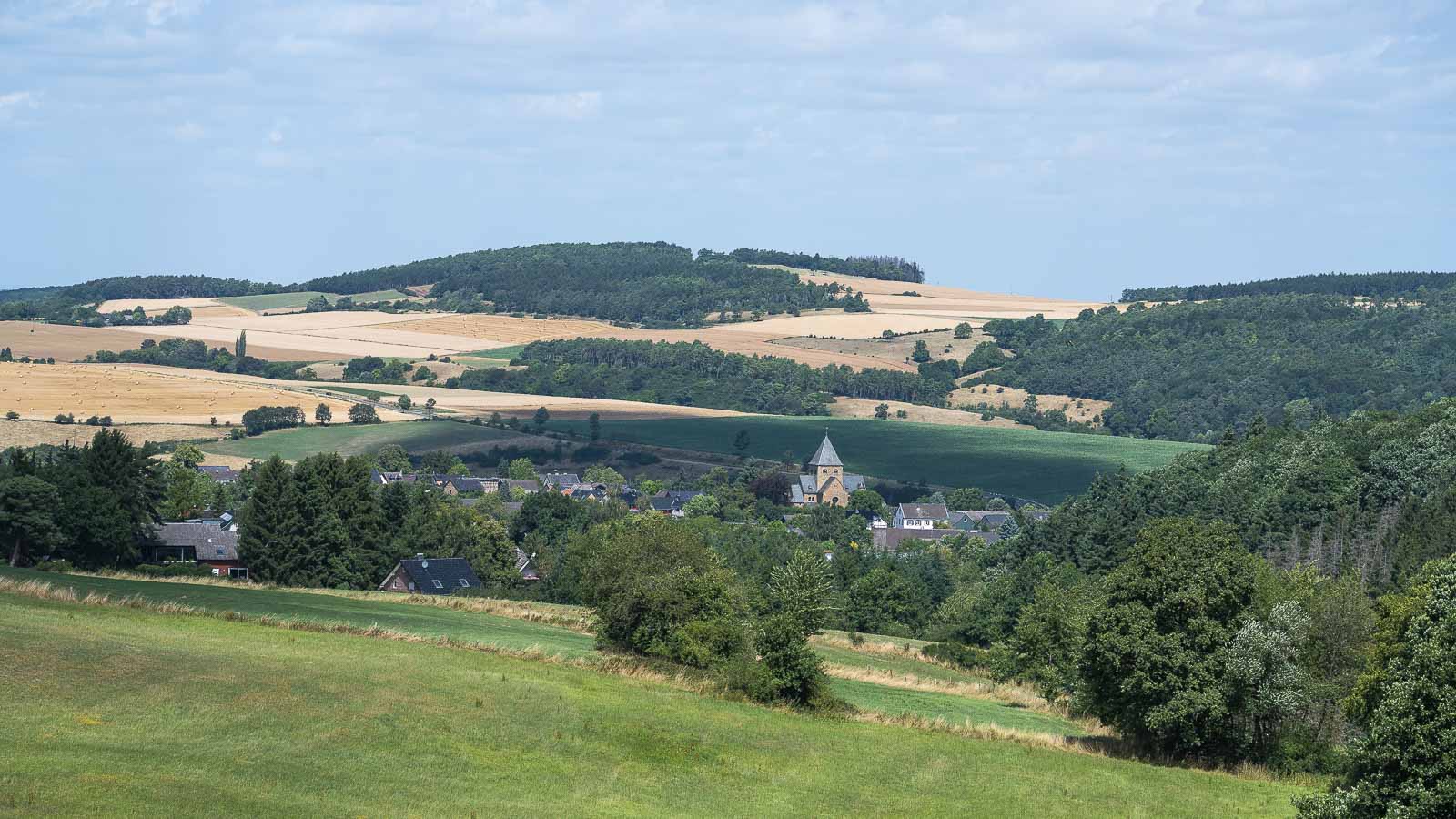 Unsere letzte Wanderung in der Eifel machten wir im Mai, also vor ungefähr 2 Monaten. Die Eifelschleife Pfaffenbusch stand schon länger auf meiner Liste der avisierten Wanderungen. Es war ein Sonntag und es waren noch Schulferien, daher standen einer Autofahrt auf die andere Rheinseite keine verkehrstechnischen Gründe entgegen. Ein Anfahrt per Bahn, schließlich besitzen wir ja seit kurzen ein 49 Euro Ticket, kam für uns von Leichlingen aus nicht in Frage, da wir mehrfach hätten umsteigen müssen.