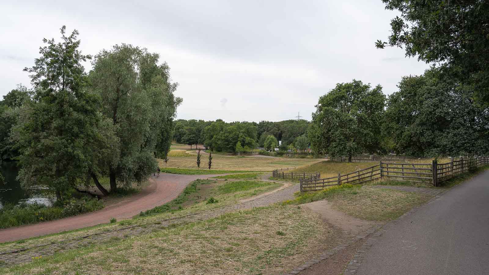 Nun denn, für eine 5 km Wanderung würden wir nicht nach Düsseldorf fahren. Daher machten wir aus der Streckenwanderung eine Runde durch die Parklandschaft und kamen so auf lohnenswerte 9,8 km.