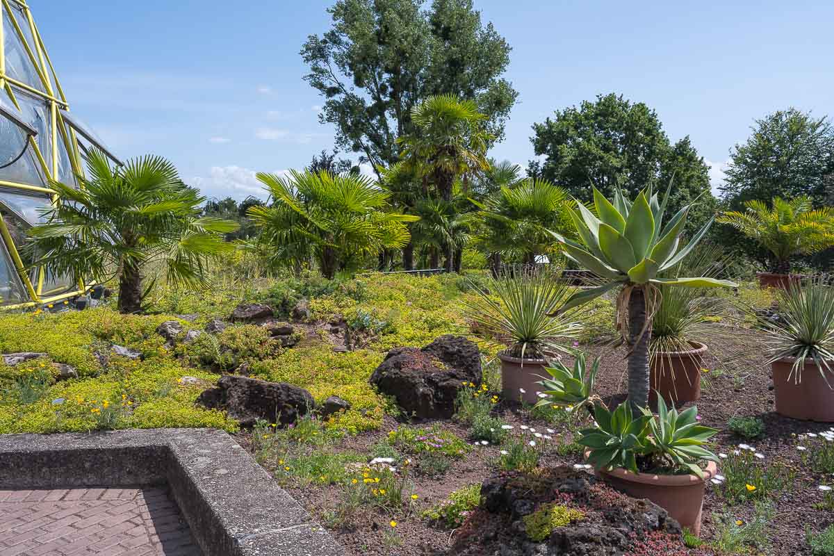 Vom Deich aus geht es in den Botanischen Garten der zur Heinrich Heine Universität gehört und dessen Eintritt umsonst ist. Herausstechend ist dort ein Kuppelbau den wir natürlich besichtigen mußten. Hinter dem Botanischen Garten ist der als Streckenwanderung angelegt Track beendet. Wir suchten uns einen Rückweg zu unserem Ausgangspunkt der sich so weit es geht vom Hinweg unterscheiden sollte. Bei der Vielzahl an Wegen in dem Gelände ist dies kein Problem (siehe Karte).