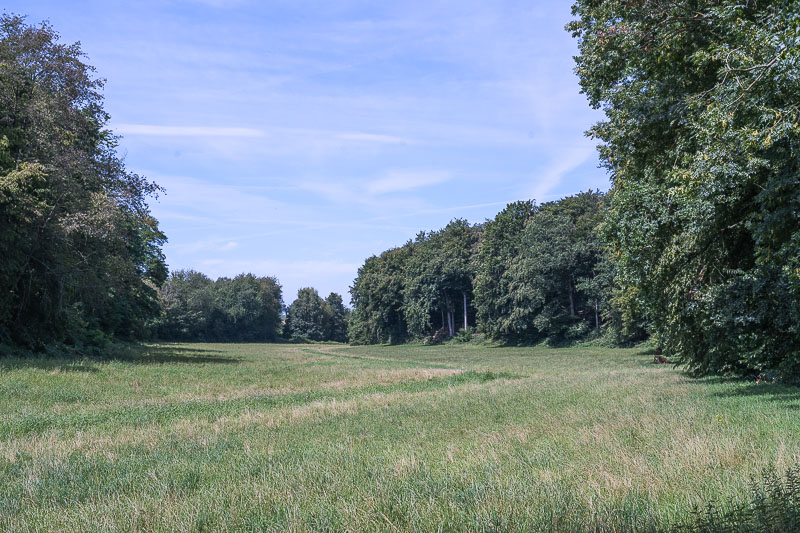 Die Feldwege waren zunächst alle asphaltiert und kurz vor Erreichen des Dortmunder Ortsteils Oespel ging es noch ein kurzes Stück an einer Landstraße entlang. Hinter Oespel wanderten wir dann durch einen schönen Buchenwald. Danach kam dann wieder offenes Gelände. Bei dem Örtchen Düren bogen wir scharf rechts ab in ein kleines Wäldchen.