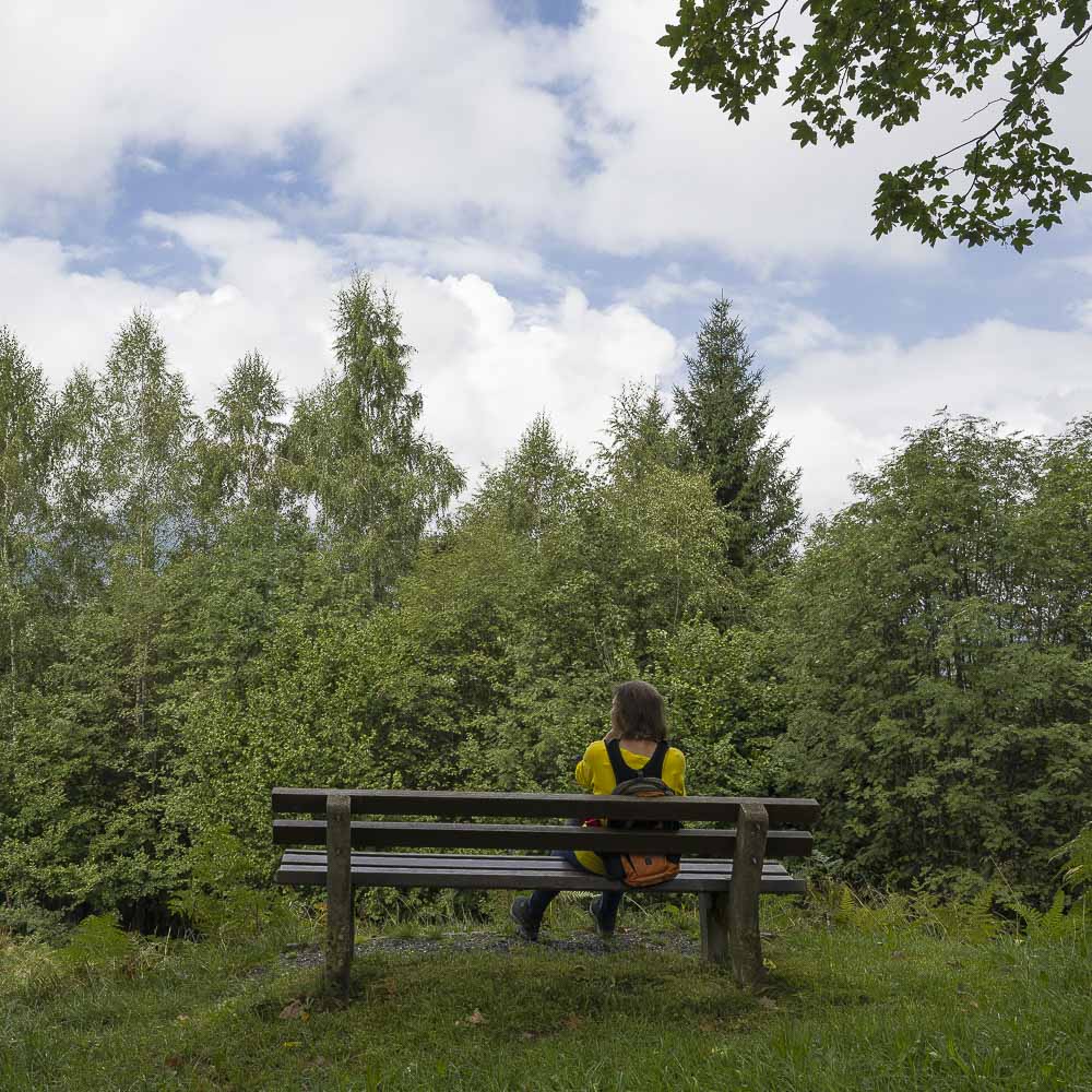 Zurück auf dem Haupttrack pausierten wir kurz auf einer seniorengerechten Schaukelbank. Die Gegend gefiel uns wirklich sehr gut, am schönsten war es am Moorweiher (siehe Beitragsbild), einem kleinen Teich an dem wir vorbei kamen.