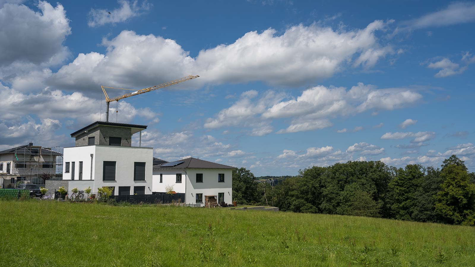 Zunächst liefen wir etwa 800 m durch den Ort in dem es viele schöne freistehende Einfamilienhäuser gibt. Auch zahlreiche Neubauten finden sich darunter. Offensichtlich wohnen in dem Ort viele Pendler in den Bonner Raum.