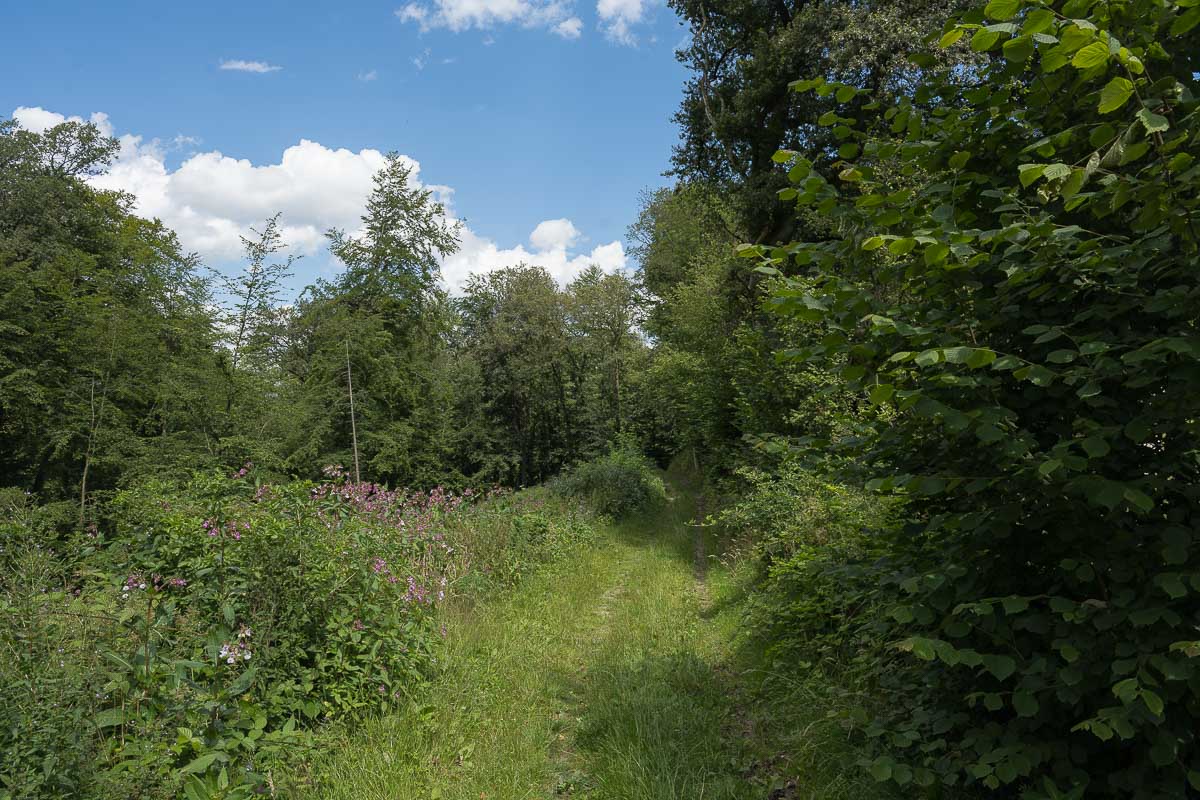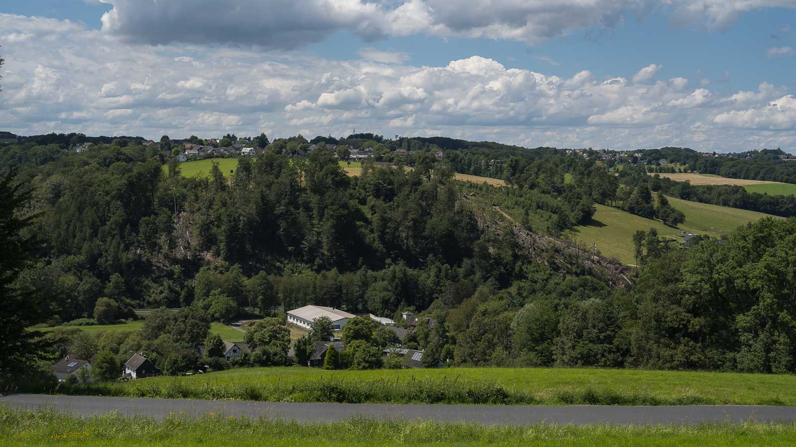 Als wir den Ort verließen, ging es ein kurzes Stück über offenes Feld bevor wir in den Wald „eintauchten“. Langsam aber stetig ging es bergab bis wir unten im Tal an der Bröl heraus kamen.
