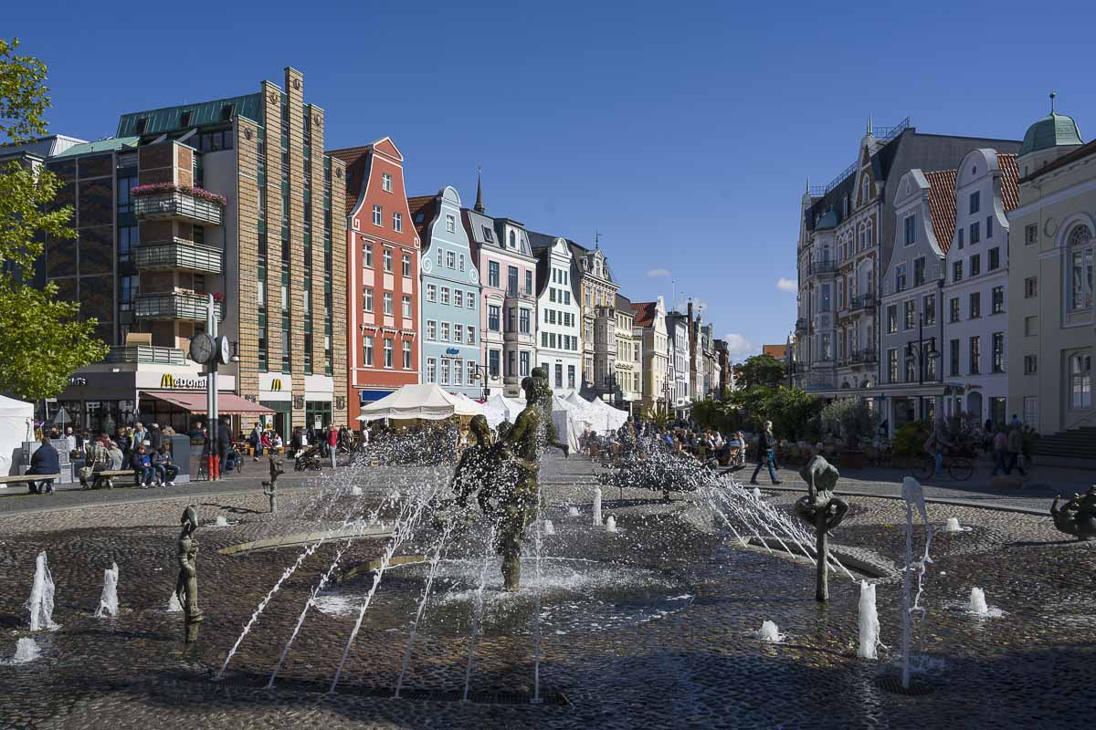 Am besten gefiel uns die Kröpeliner Straße und der Universitätsplatz mit seinem tollen Brunnen der Lebensfreude. Danach schlängelten wir uns durch die Altstadt, vorbei an einigen Baustellen die uns zum Improvisieren zwangen.