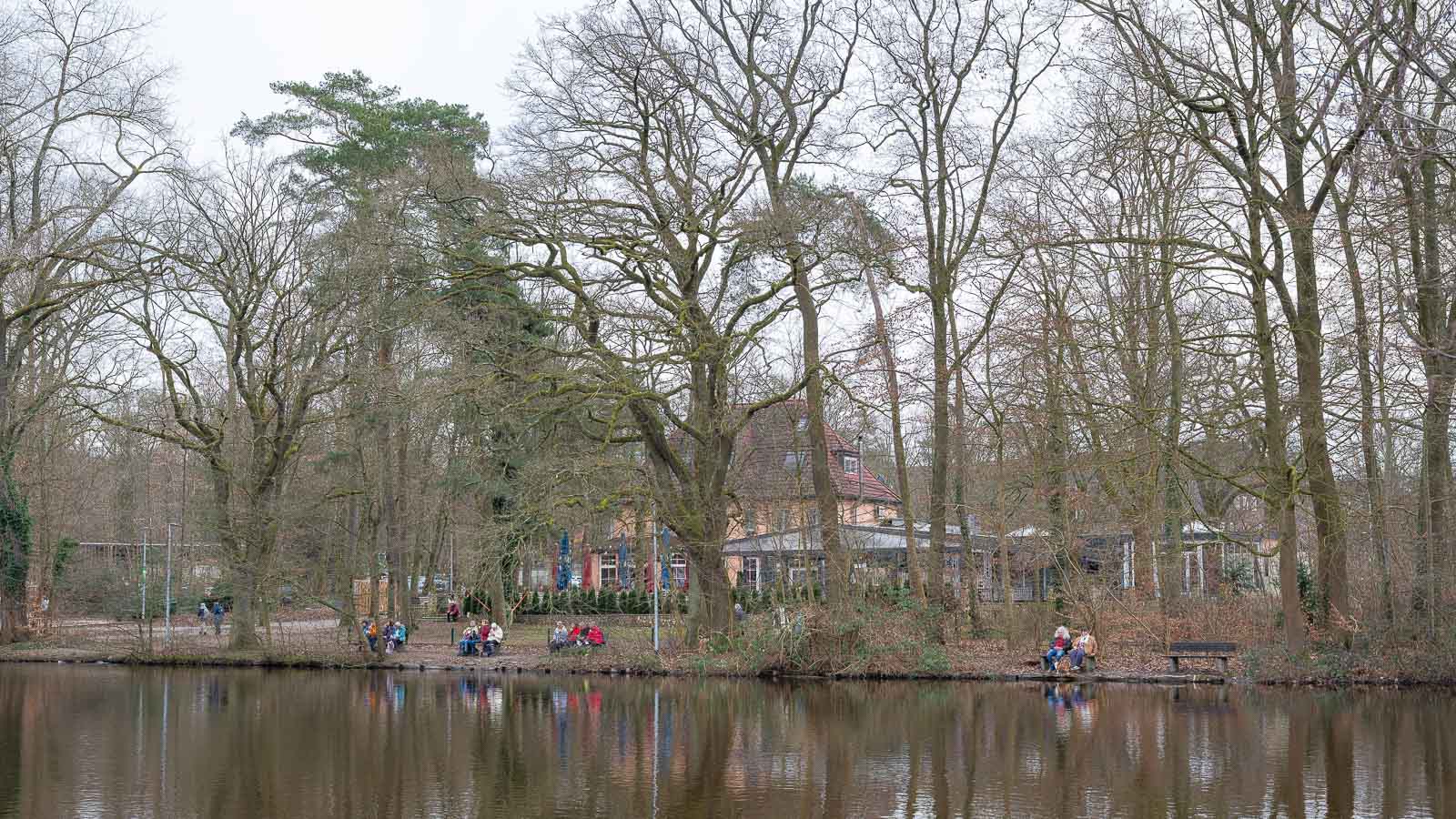 Nach etwa 3 – 4 Kilometern kamen wir zum Waldschwimmbad. Hier gibt es einen weiteren, namenlosen Teich an dem auch das Ausflugslokal 12 Apostel liegt. Wer beabsichtigt im Anschluss an die Wanderung zum Essen einzukehren, sollte gleich hier starten. Parkplätze gibt es hier en Masse. Sie waren allerdings auch gut belegt.