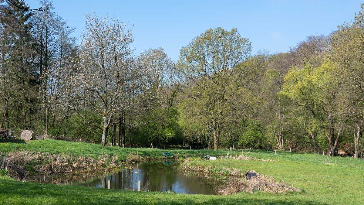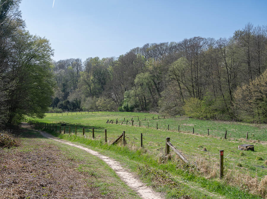 Mittlerweile war die Tageszeit schon etwas weiter fortgeschritten, die Sonne hatte die anfängliche Wolkendecke vertrieben und war am Horizont weiter empor gekrabbelt. Somit wurden die Lichtverhältnisse zum Fotografieren deutlich schlechter als zu Beginn meiner Wanderung. Daher gibt es von dem durchwandertem Pilghauser Bachtal weniger Bilder.