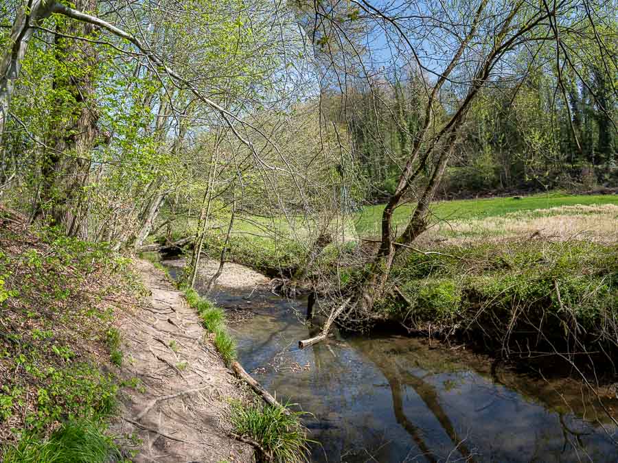 Am Pilghauser Bach angekommen bog ich nach links ab in das entsprechende Bachtal und hatte dort den Originaltrack wieder erreicht. Durch diese Abkürzung ersparte ich mir den Bahnhof und den wohl weniger spannenden Park&Stellplatz für Wohnmobile am Technologiezentrum Solingen.