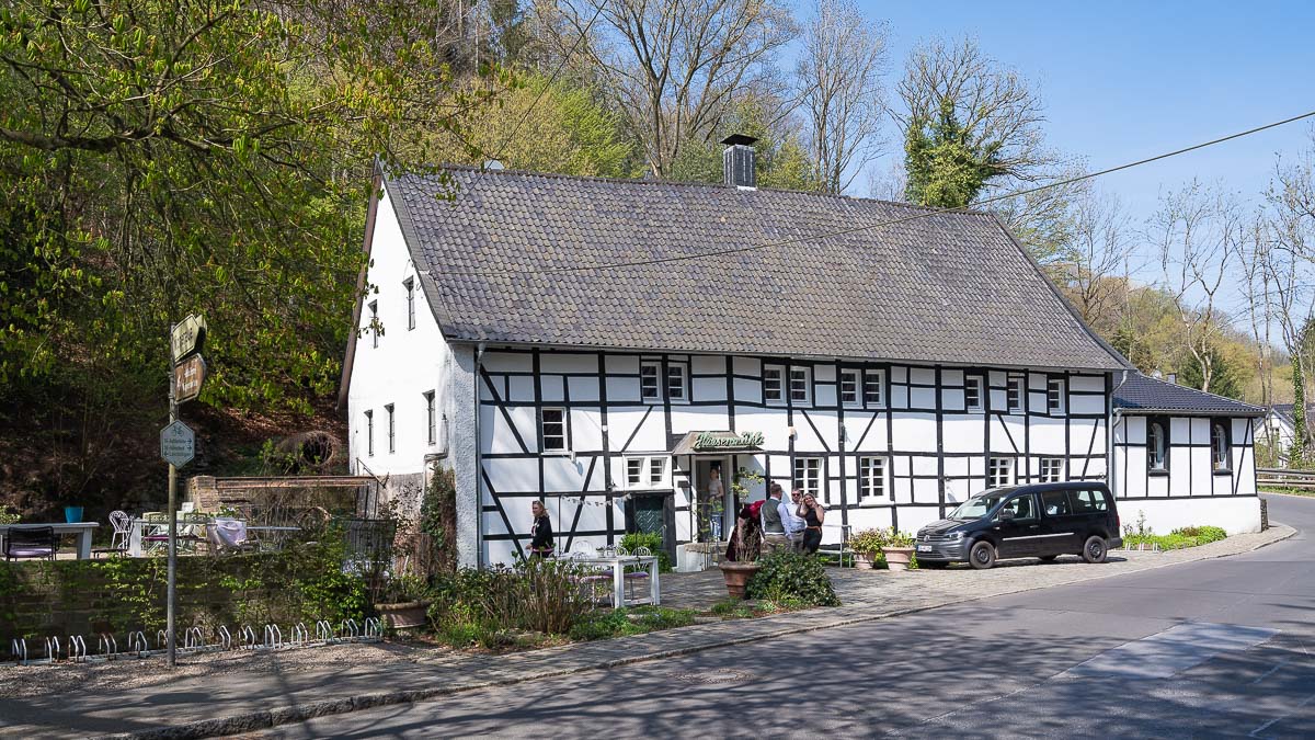 Frisch gestärkt machte ich mich auf die restliche Etappe, die vorbei an der ehemaligen Motorradkneipe „RockStar“ in das Nacker Bachtal führte. Kurz vor der Einmündung des Nacker Baches in die Wupper kam ich an der Hasenmühle vorbei, einem mittlerweile wieder geöffnetem, empfehlenswerten Ausflugslokal, welches sich kurz vor dem Ziel für einen Einkehrschwung anbietet. Wie zuvor schon angedeutet war der Wanderparkplatz am Wipper Kotten mittlerweile gut belegt und es waren keine Plätze mehr frei.