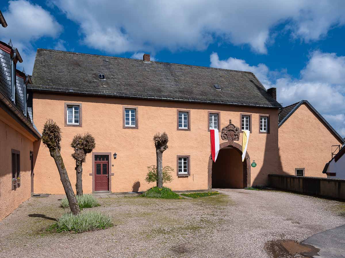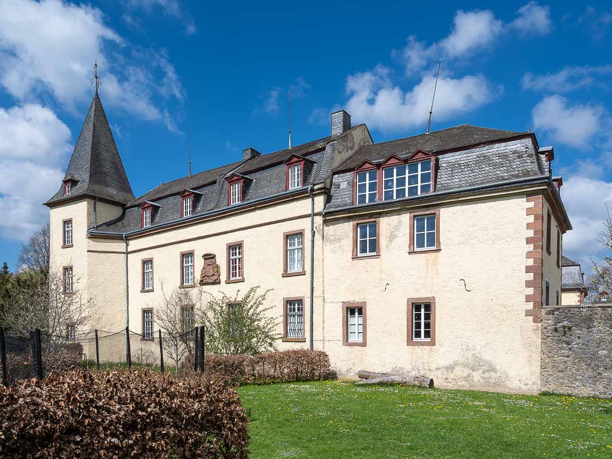 Die Runde startete im Eifeldörfchen Schmidtheim und wir liefen sie wie vorgesehen im Uhrzeigersinn. Das Schloss Schmidtheim konnte ich nur von außen über einen Gartenzaun hinweg fotografieren. Man kann dort, wie in vielen solcher alten Schlösser üblich, Räumlichkeiten für Feiern oder Events anmieten. Auch Ferienwohnungen stehen zur Verfügung.